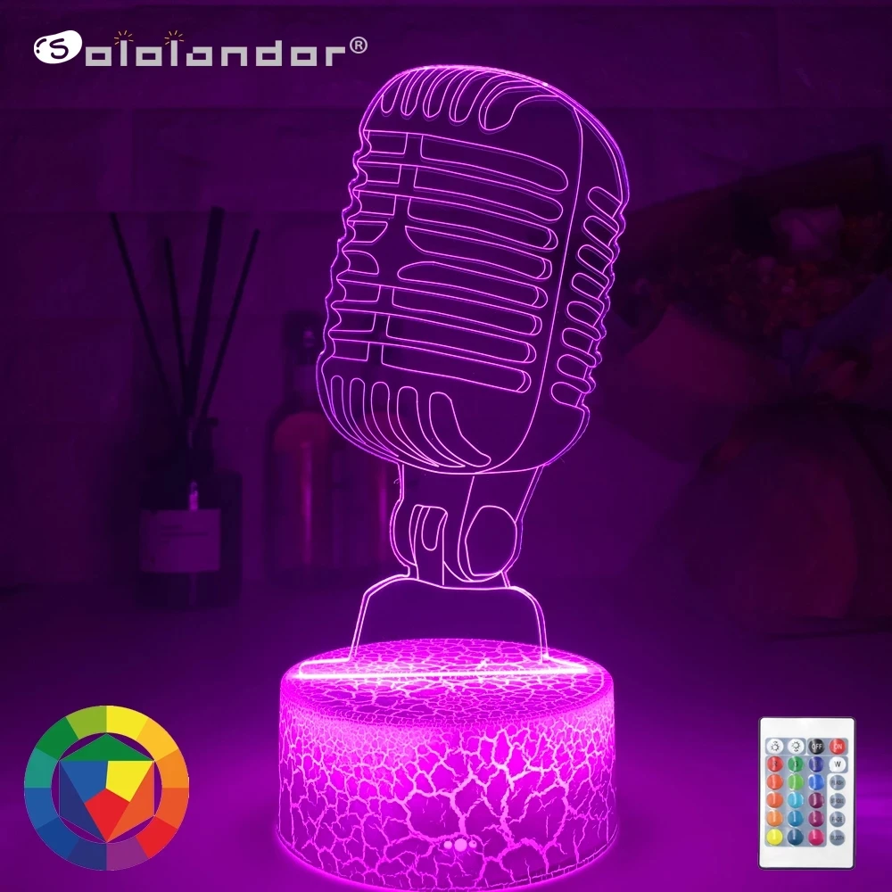 Музыкальный вентилятор, микрофон, креативная 3D Светодиодная иллюзия, новинка, настольная лампа, светодиодный декоративный Ночной светильник, детская лампа, настольная, классный подарок