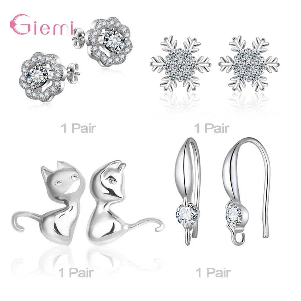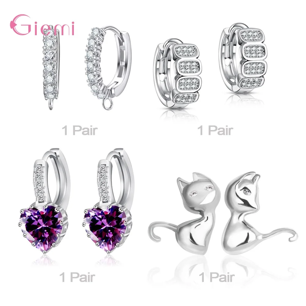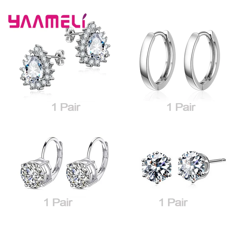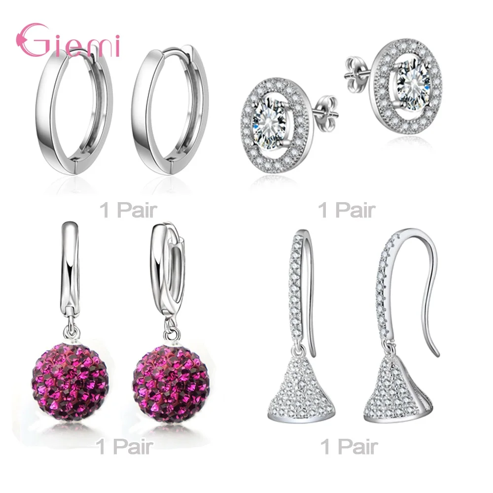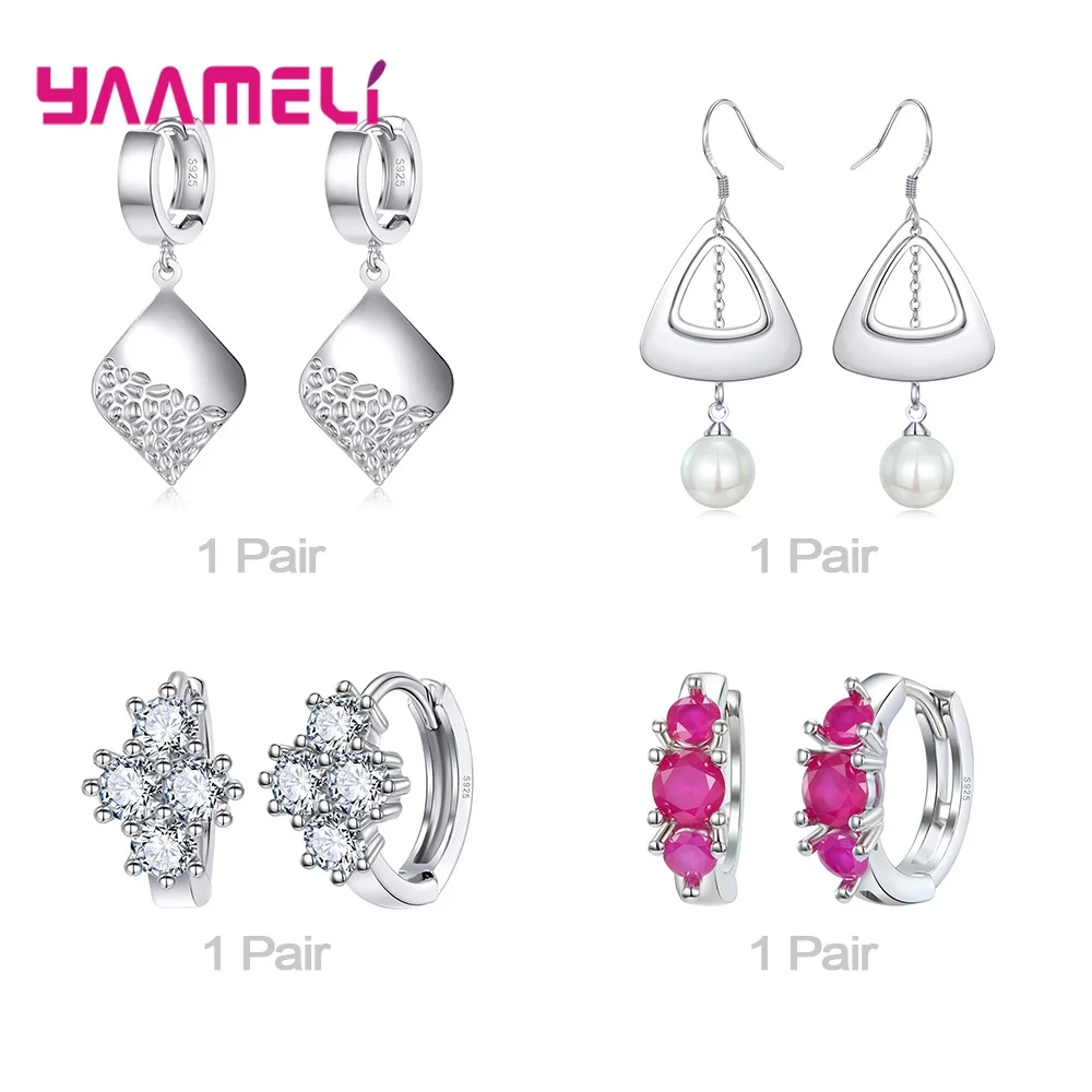 4 пары в партии, свисающие серьги для женщин, серьги для девочек 925 стерлингового серебра серебристо-подарки на день Святого Валентина, большое ожерельес 2021 тренд оптовая продажа