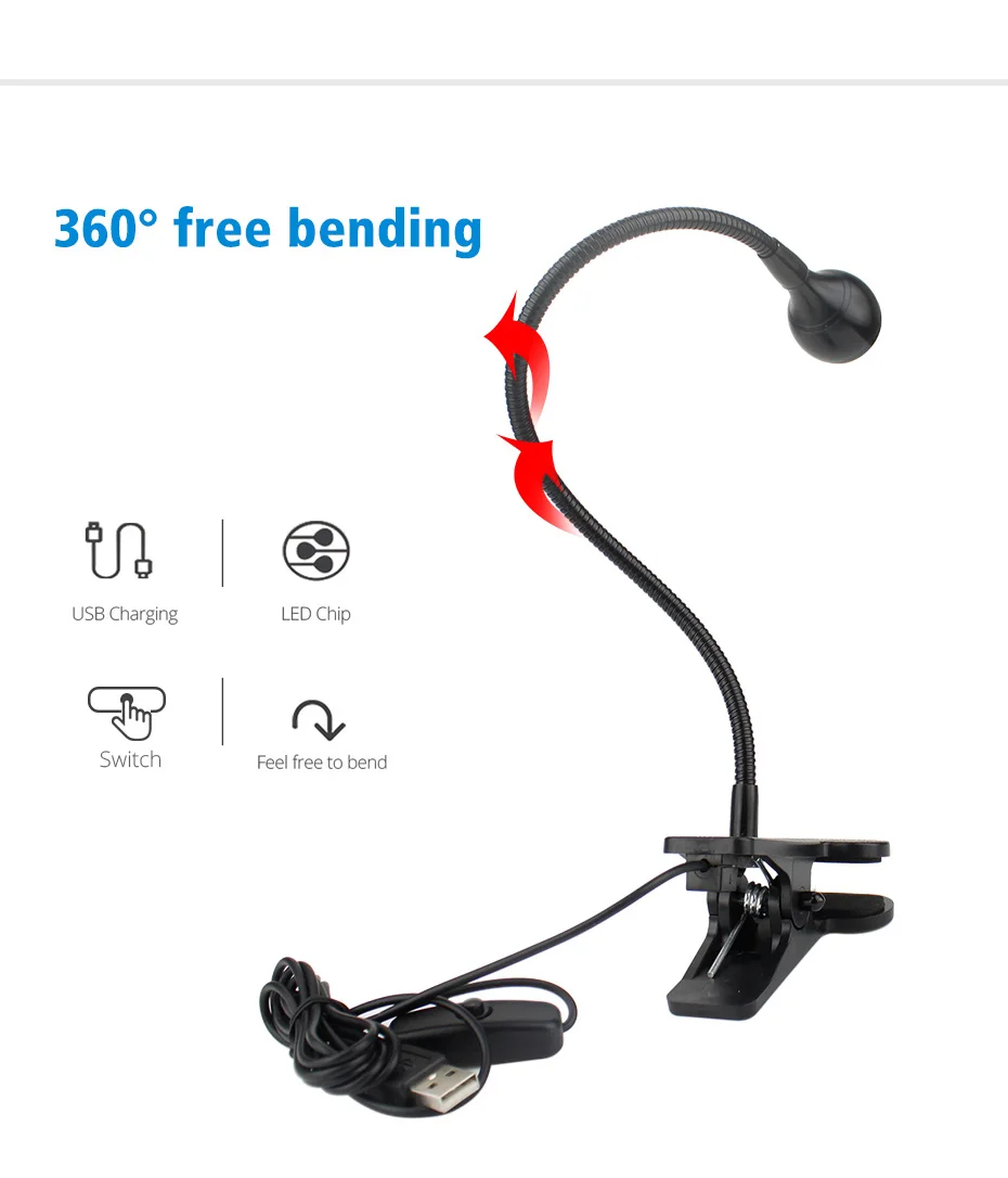 Держатель USB Настольная лампа с зажимом Перезаряжаемый USB Светоди...