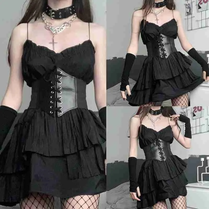 Платье, украшенное поясом, Готический Темный кружевной короткий топ корсет, пояс из искусственной кожи, черный пояс с уплотненным ремнем, бюстье, топы, тонкие
