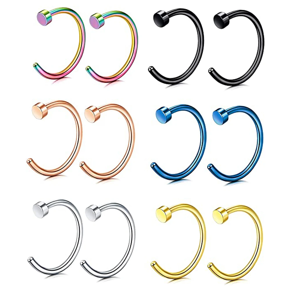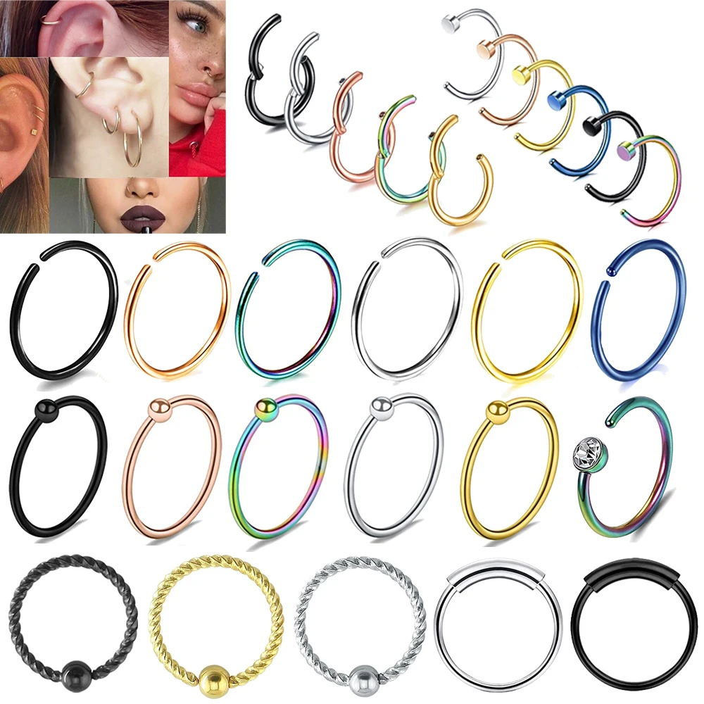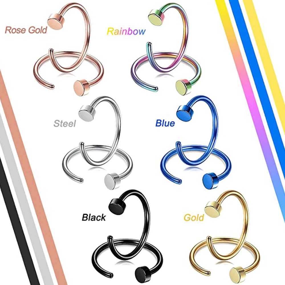 1 предмет Цветной 316L кольцо для носа из нержавеющей стали 16g, 14g Clickr кольца для пирсинга перегородки носа кольца ушной хрящ спираль украшения для пирсинга губ6810 мм