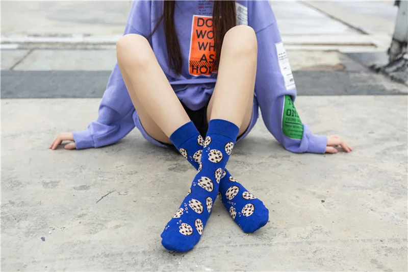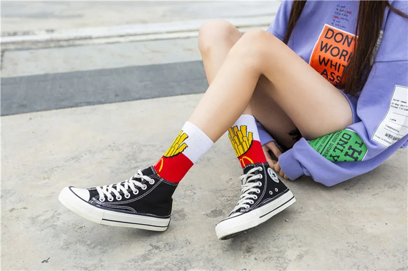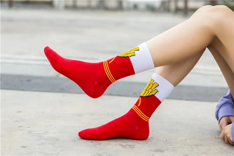 Цветные цветные женские хлопковые носки, картофель фри, кока, фрукт...