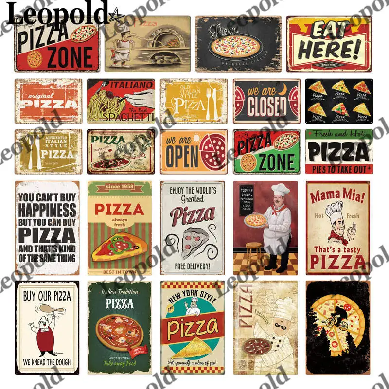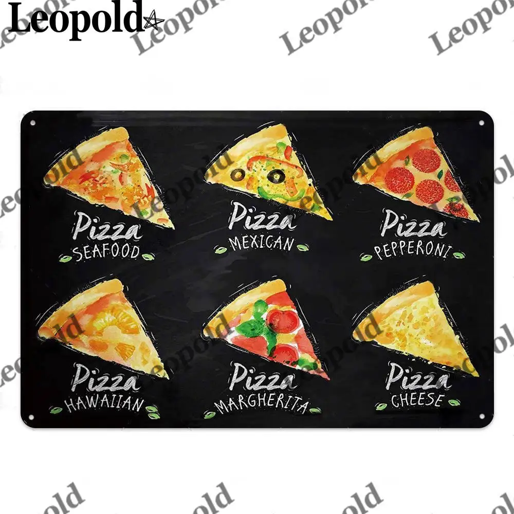 Пищевая серия, металлический налет, буквенный лозунг для пиццы, комбинированная картина, современное настенное искусство, металлическое украшение для кухни и ресторана