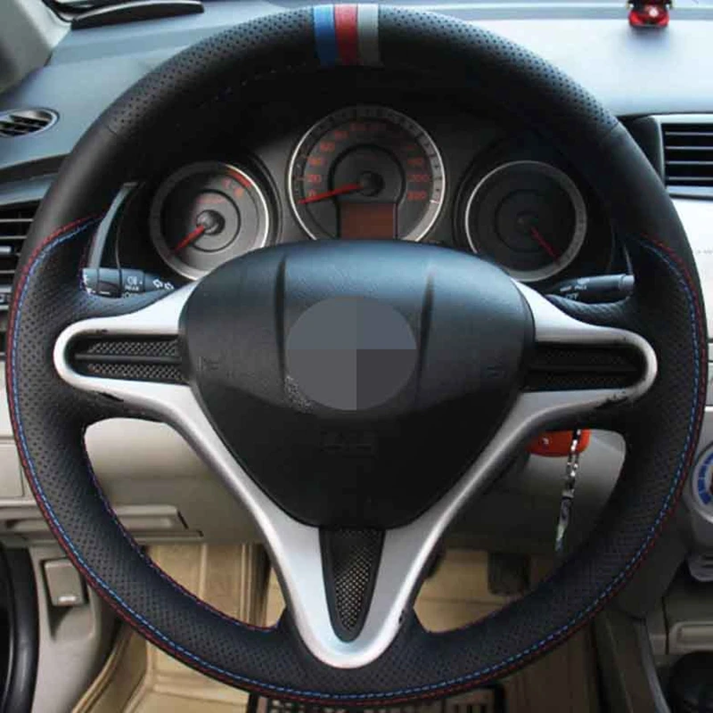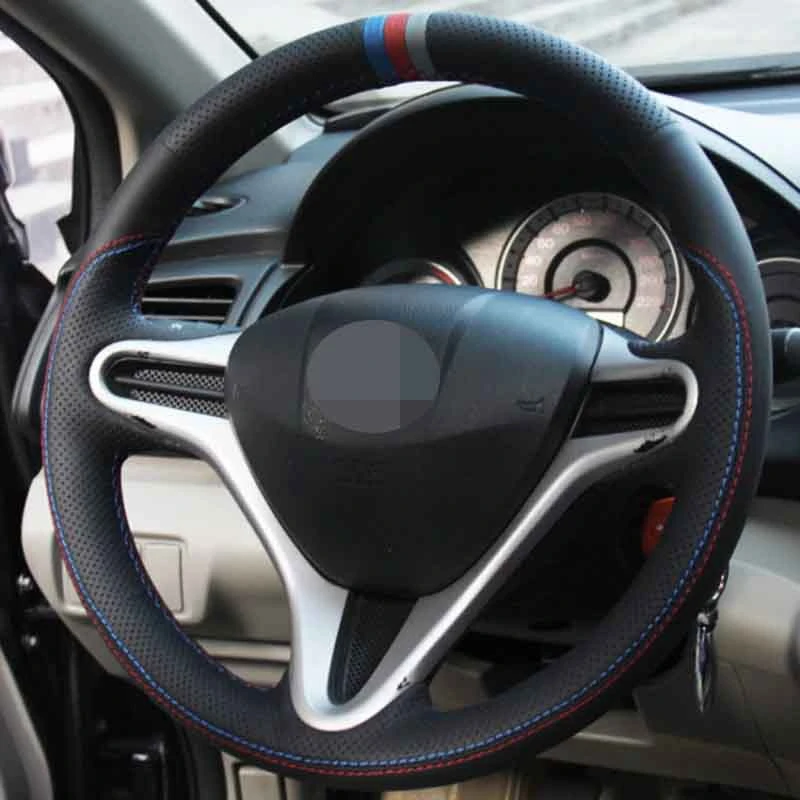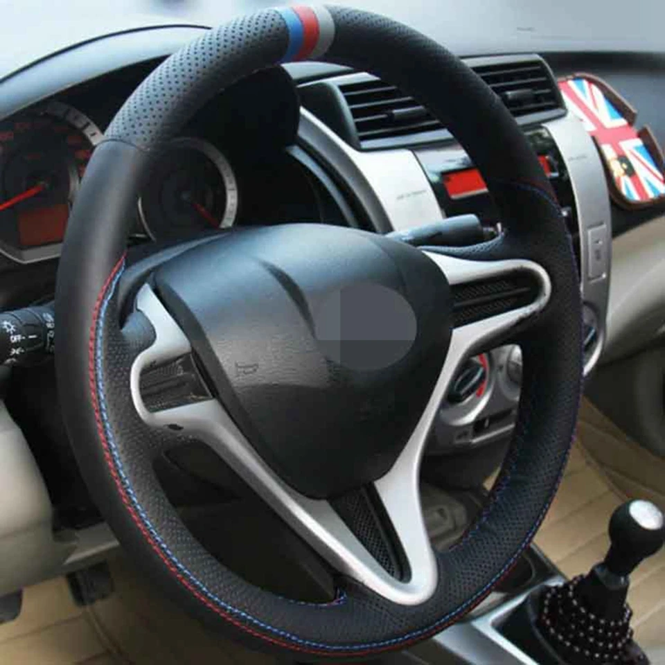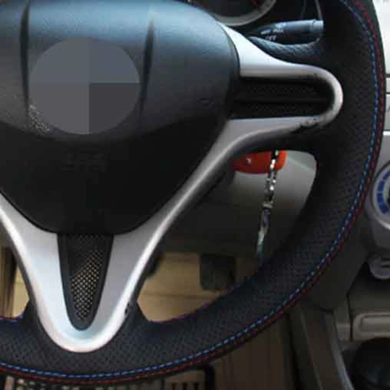 Чехол рулевого колеса автомобиля мягкая сшитая вручную натуральная кожа черного цвета для Honda Civic, Civic 8 2006-20011 (3-спицевая)