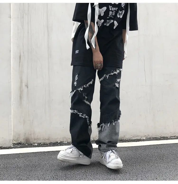 GODLIKEU корейские модные джинсы с бахромой в стиле пэчворк модные ...