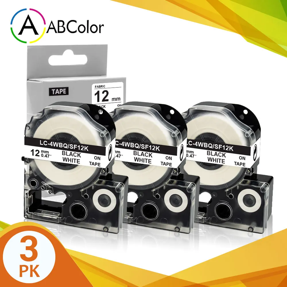 В ABCOLOR 3 шт. 12 мм Совместимость SF12K ткань переводная картинка запечатанных лент совместимый для Epson KingJim SF12K LK-5WBQ LW-300 LW-400 принтер