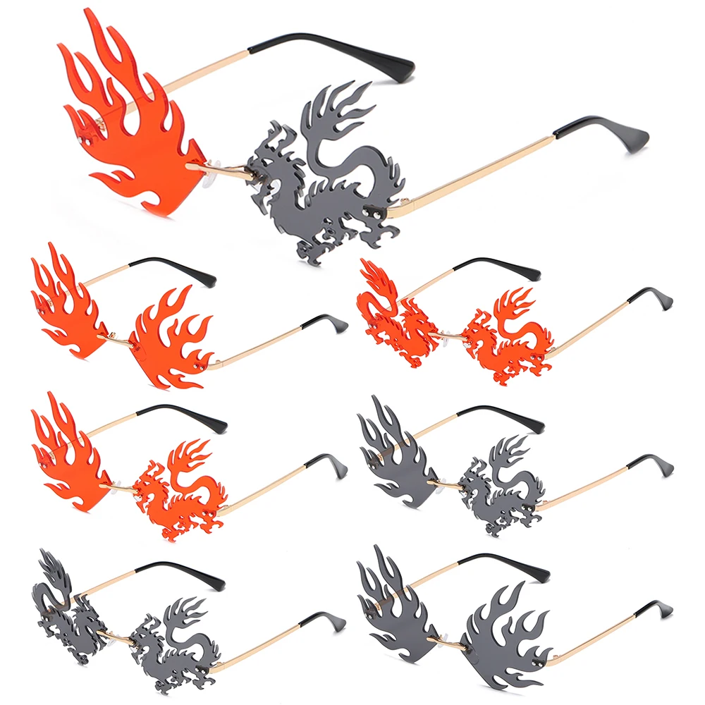 Солнцезащитные очки без оправы в стиле панк женские модные уникальные очки с огненным драконом Мужские красные черные 2021 очки солнцезащитные очки
