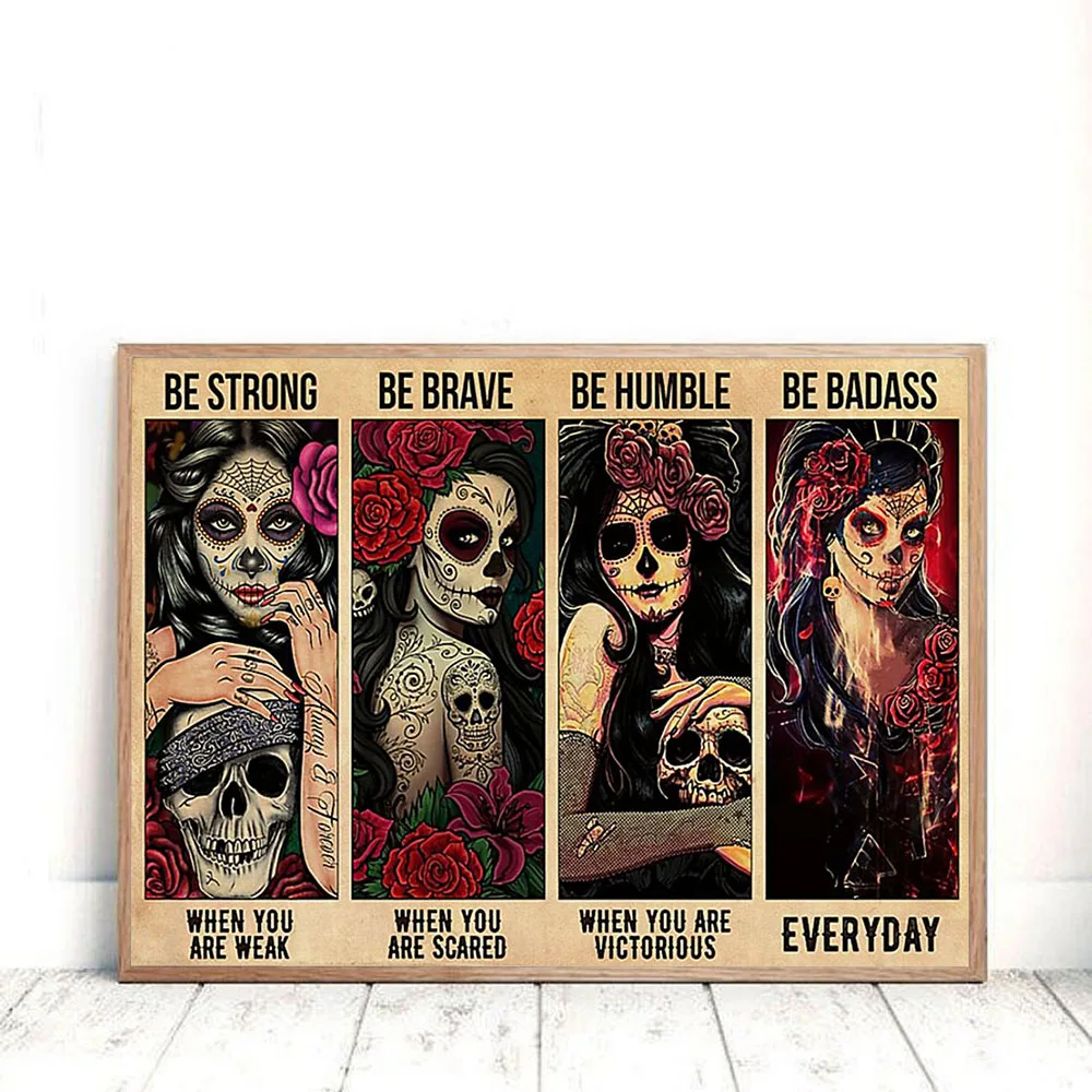Плакаты и принты с изображением сахарного черепа, крепкие скромные драгоценные камни, Картина на холсте, винтажные настенные картины для гостиной, украшение для дома