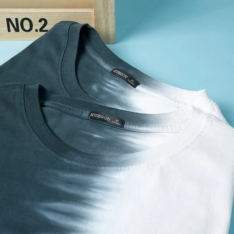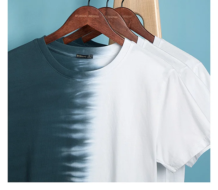 Футболка KUEGOU 100% мужская с принтом тай-дай, тенниска из 90060 хлопка с короткими рукавами, модная майка с градиентом, большие размеры, лето