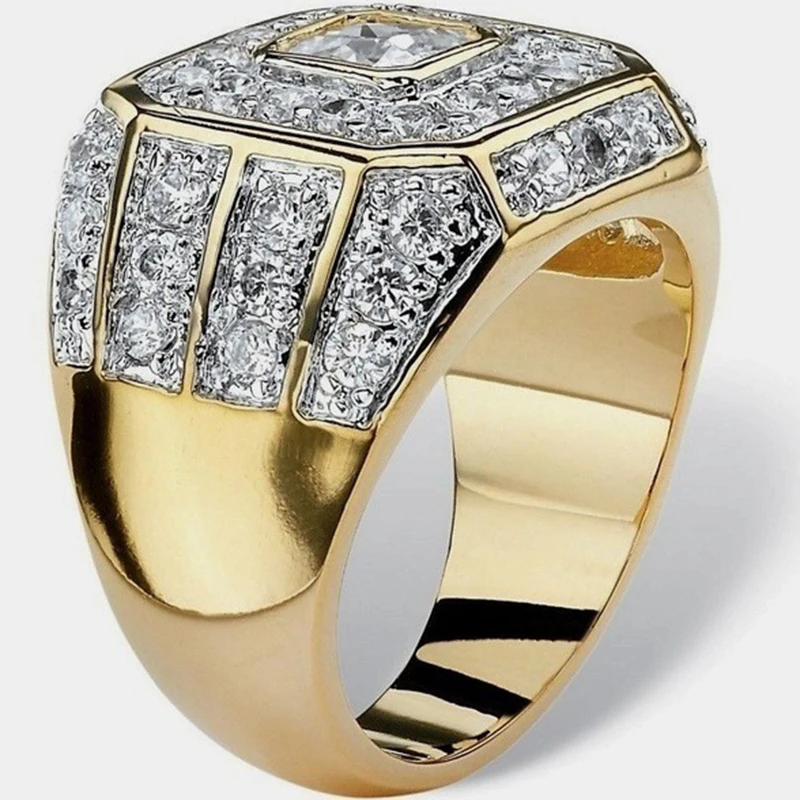 Модное мужское кольцо с квадратным белым кристаллом для женщин золотое панк полное стразы кольцо на палец мужское кольцо с кристаллами в стиле рок Свадебные украшения