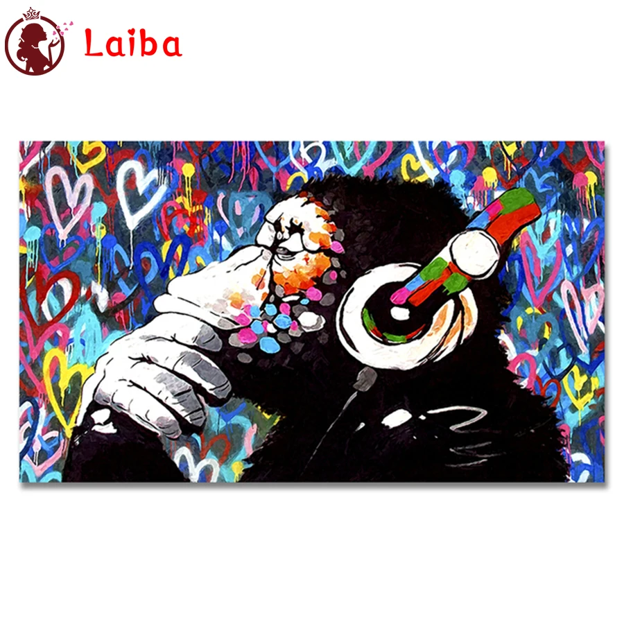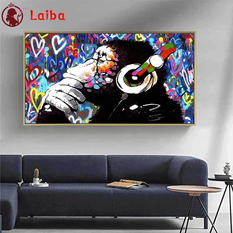 Алмазная мозаика, абстрактное красочное Искусство граффити, орангутан, прослушивание музыки, алмазная живопись, вышивка крестиком, настенное искусство
