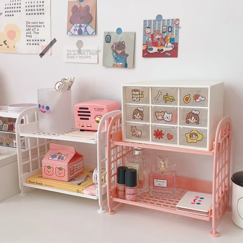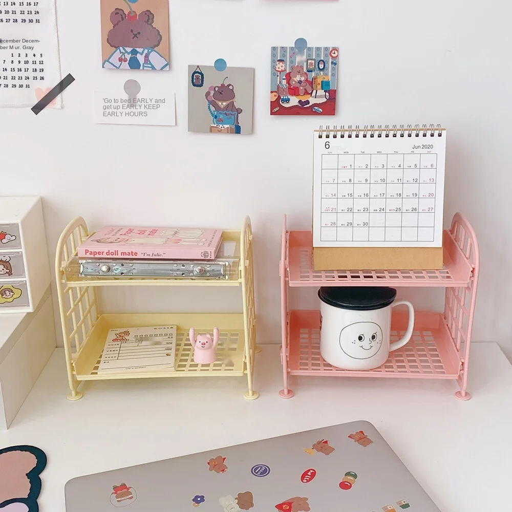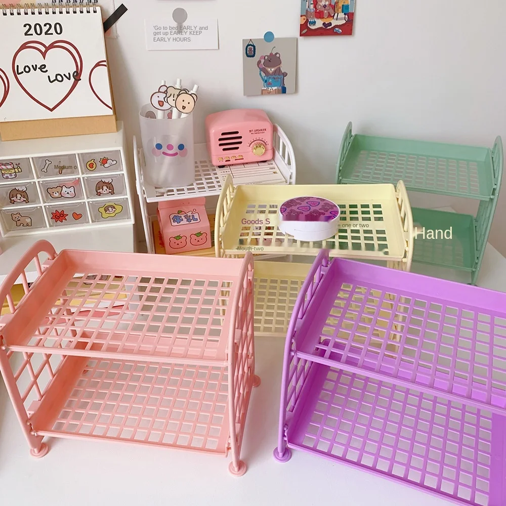 INS офисная полка для хранения Двухярусная подставка розовая Милая ...