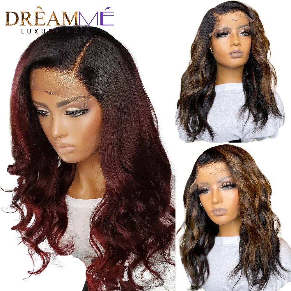 Медовая Блондинка 99J цвет Бургунди Омбре хайлайтер 4X4 парики из человеческих волос на сетке для черных женщин предварительно окрашенные Детские волосы Remy