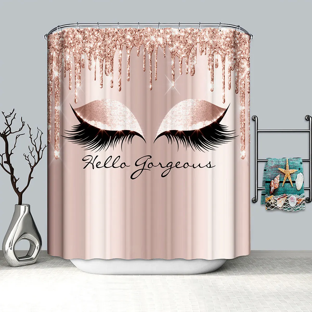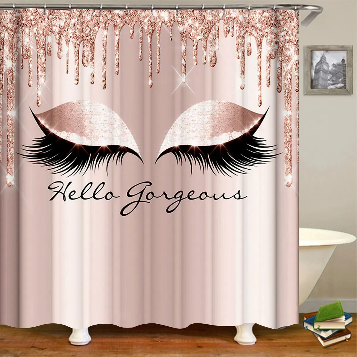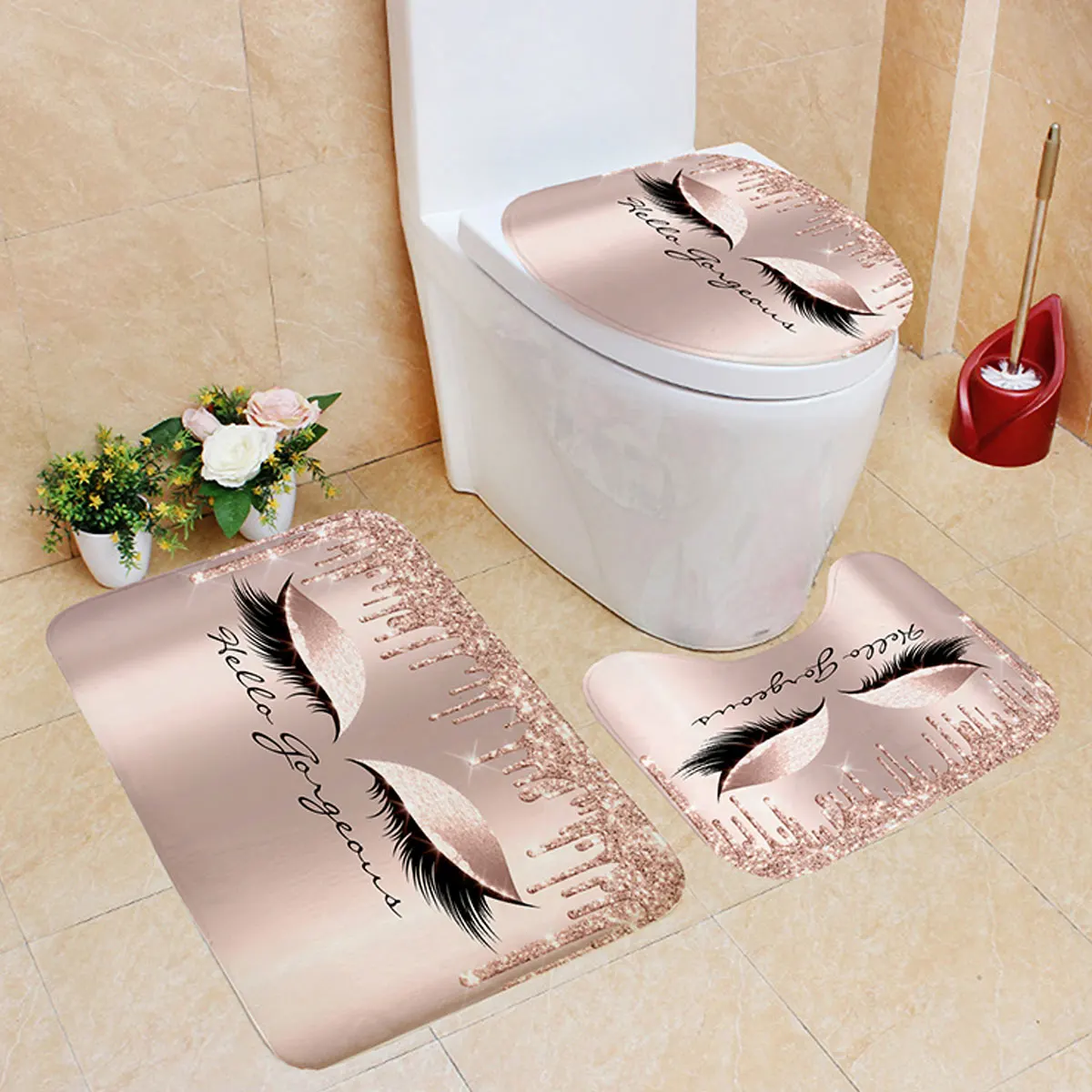 Набор штор для душа, водостойкая, розовое золото, с ресницами, для макияжа, нескользящая накладка на сиденье унитаза, набор ковриков для ванной
