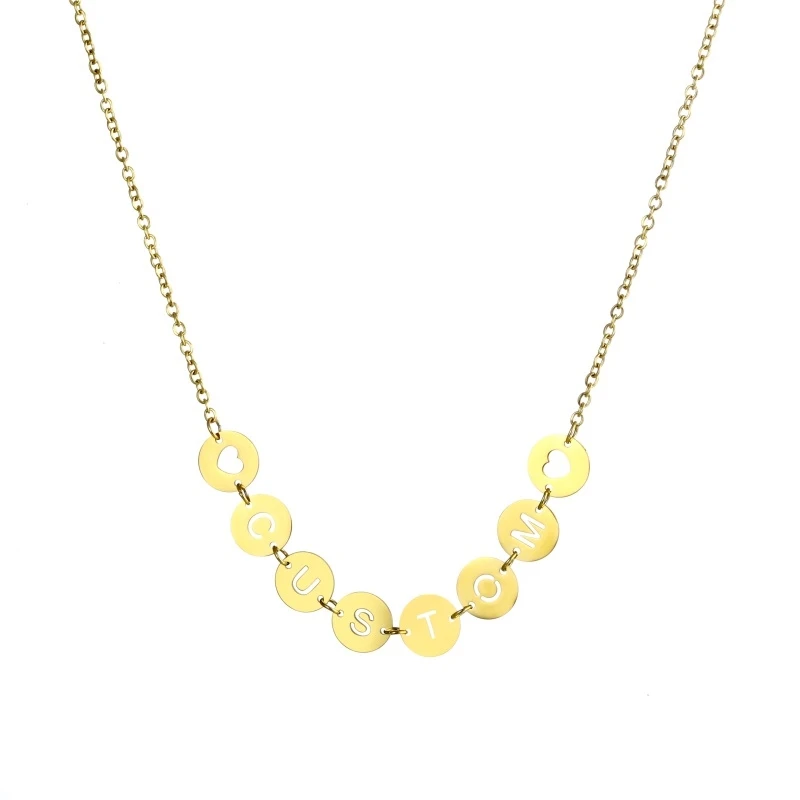 Персонализированные Пользовательское имя ожерелья для женщин по индивидуальному заказу из нержавеющей стали, позолота, пустотелое, письма сердце кулон-табличка с именем ювелирные изделия