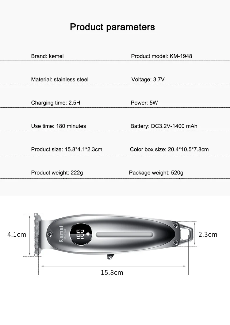 Дорогие друзья, добро пожаловать в наш магазин, мы являемся брендом Kemei. Это набор для стрижки волос, вы также можете выбрать ваши любимые продукты в нашем магазине. Более двух элементов могут связаться со службой поддержки клиентов для получения дополнительных скидок. Счастливые покупки!