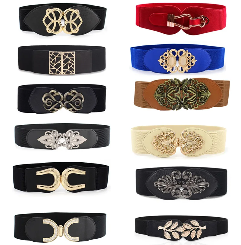 Ремень женский, эластичный, с золотой пряжкой, широкий ассортимент