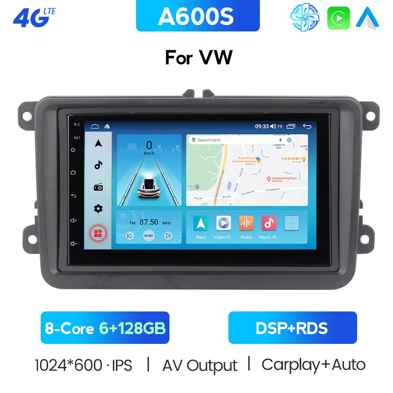1024*600 IPS HD экран, поддержка 4G LTE, 5 ГГц WiFi, встроенный Carplay/AUTO ,DSP,RDS, BT