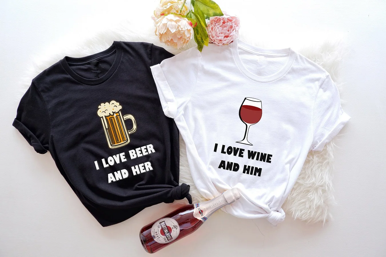 Футболка для пары с надписью I Love пивной бар, тренажерный зал, с надписью I Love вина и его Одинаковая одежда для всей парные футболки для того чтобы поить пара футболка унисекс эстетику Топы