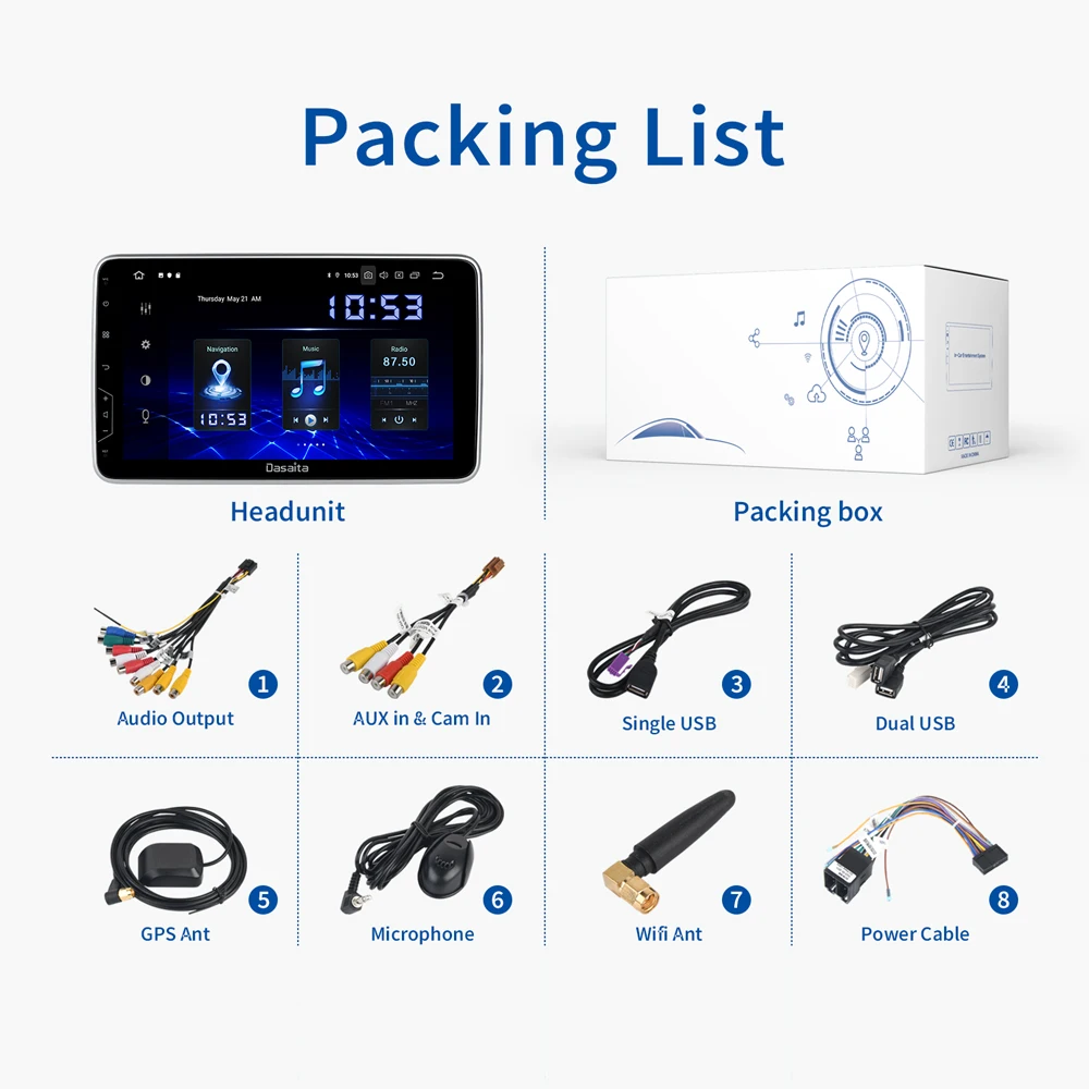 Автомобильный радиоприемник Dasaita, Android 10,0, 2 din, универсальный, 178*100, разборный, левый и правый, вращающийся экран