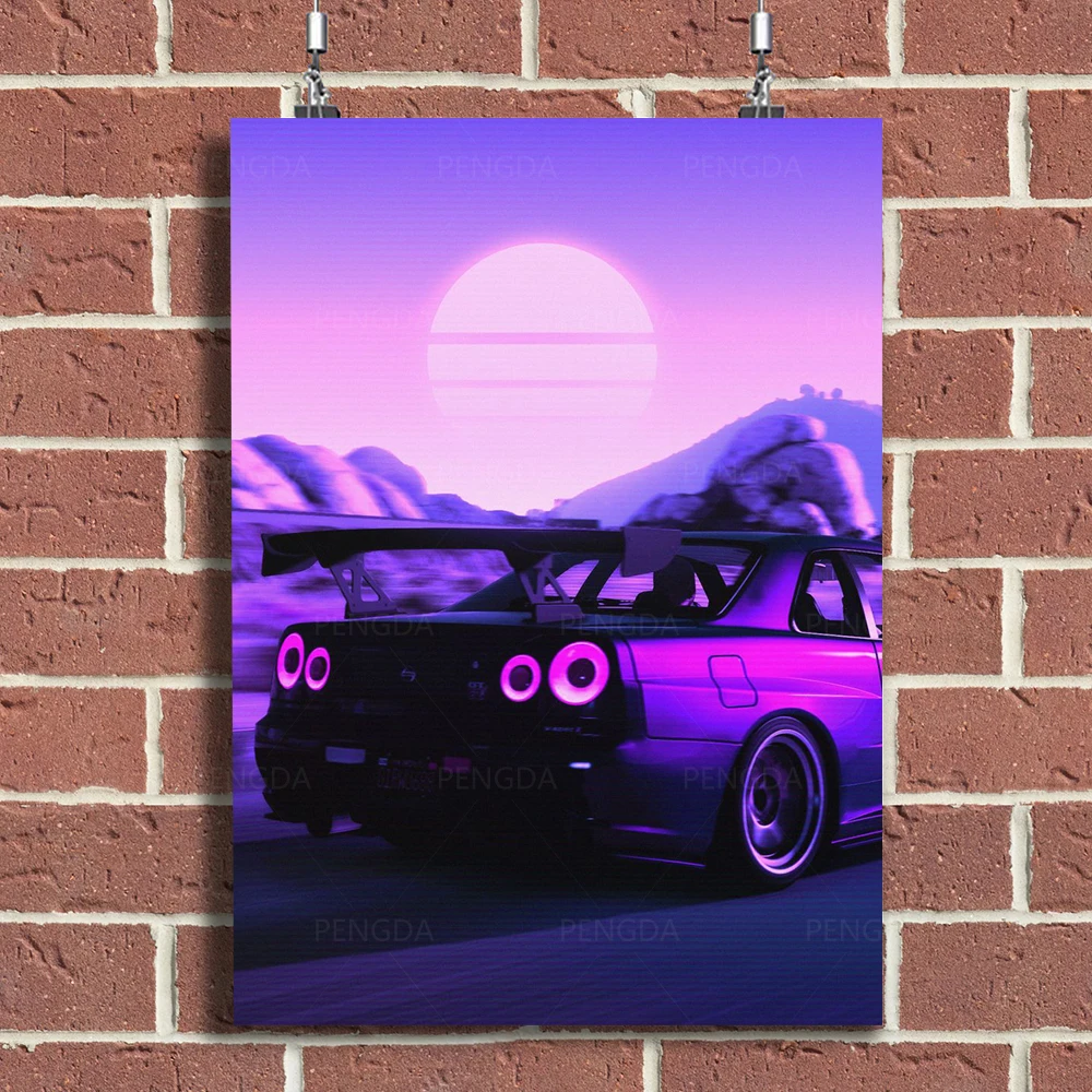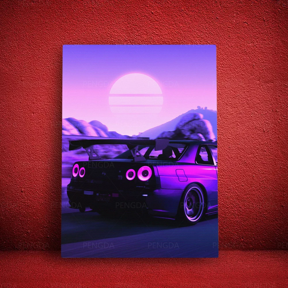 Домашний декор закат картины на холсте модульный роскошный автомобиль картины печать Vaporwave фиолетовый постер Современная Настенная картина рамка для гостиной