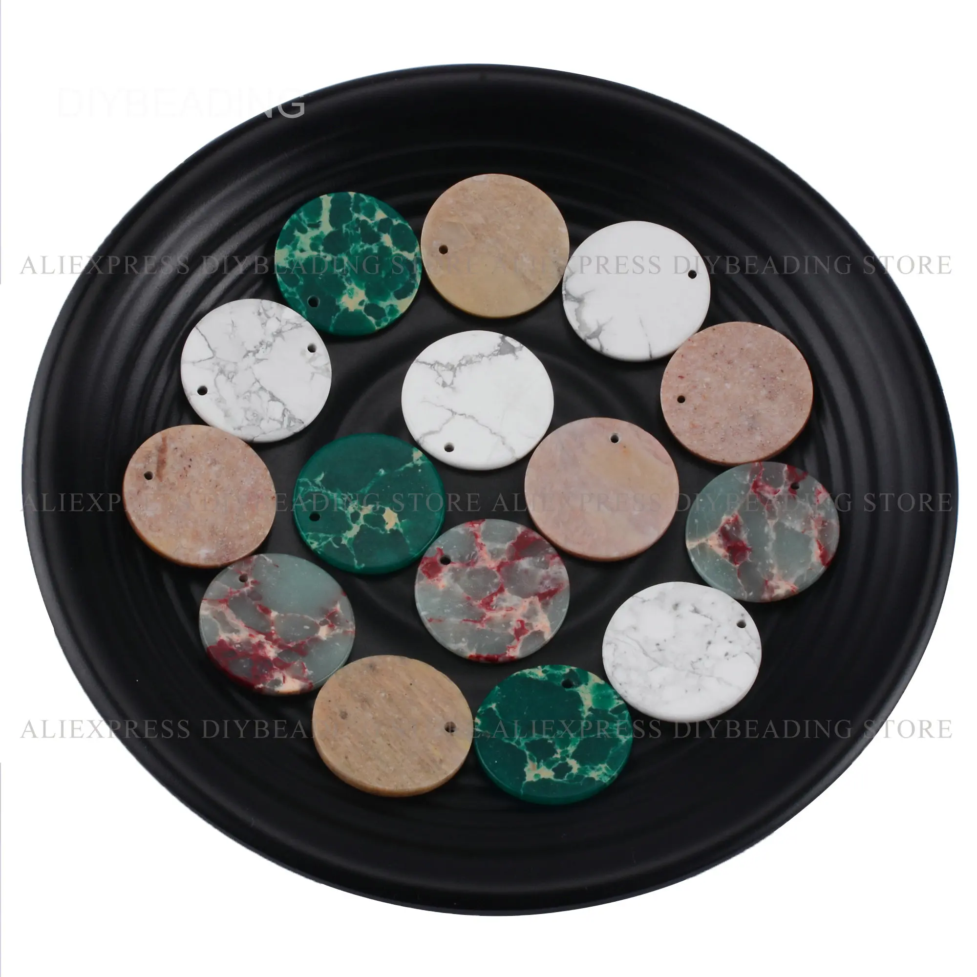 2-50 шт. драгоценного камня плоские кругого диска бусины-подвески для Цепочки и ожерелья серьги с фокусным расстоянием 25 мм говлитадревесины яшмаимператорская яшма Круглый камень (1 отверстие)