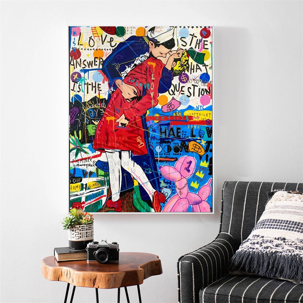 Современный портрет Граффити Арт холст картины Плакаты и декоративное настенное Искусство Рисунок поцелуя века изображение для Гостиная Настенный декор