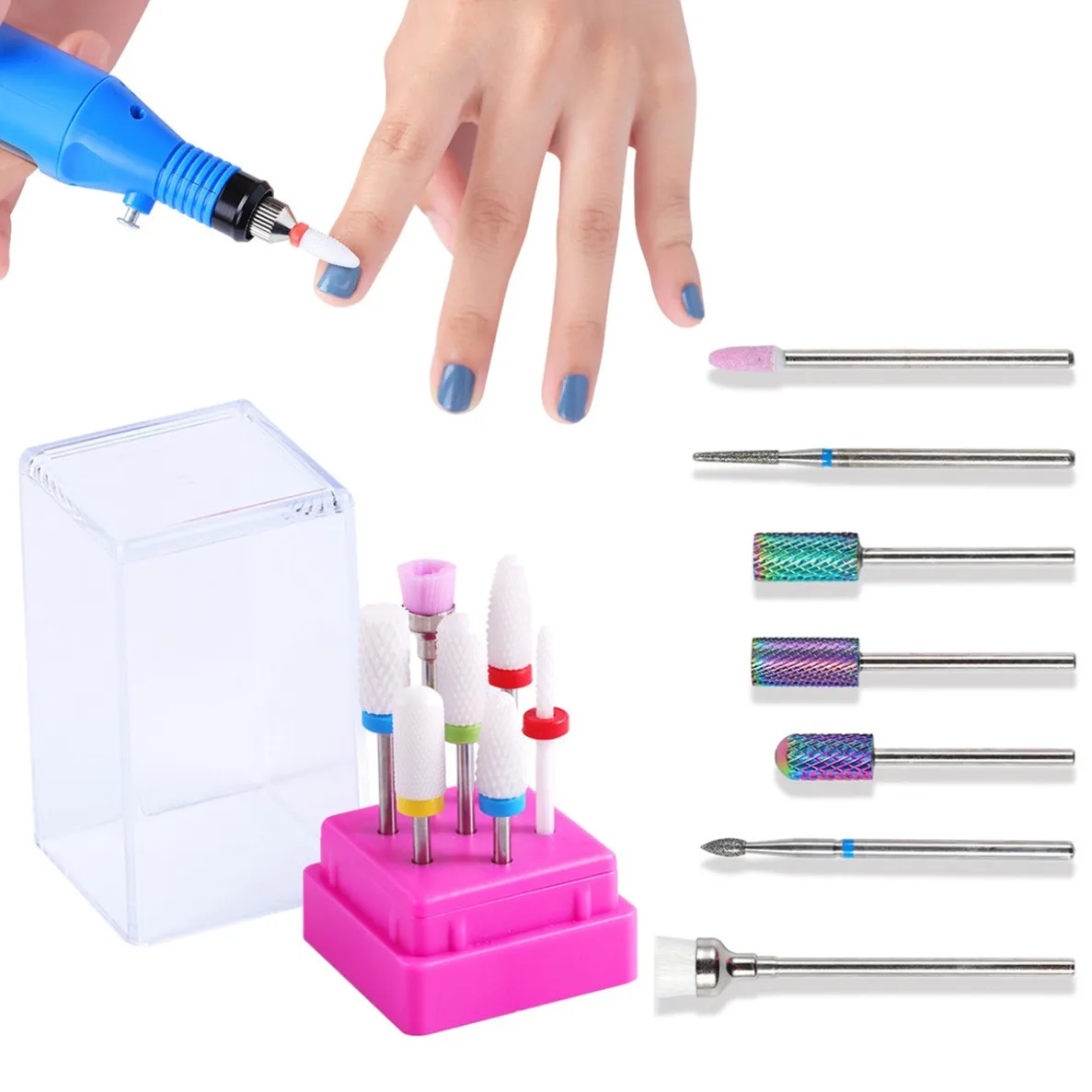 Набор керамических фрез для маникюра, набор из 7 твердосплавных насадок для электрического удаления гель-лака