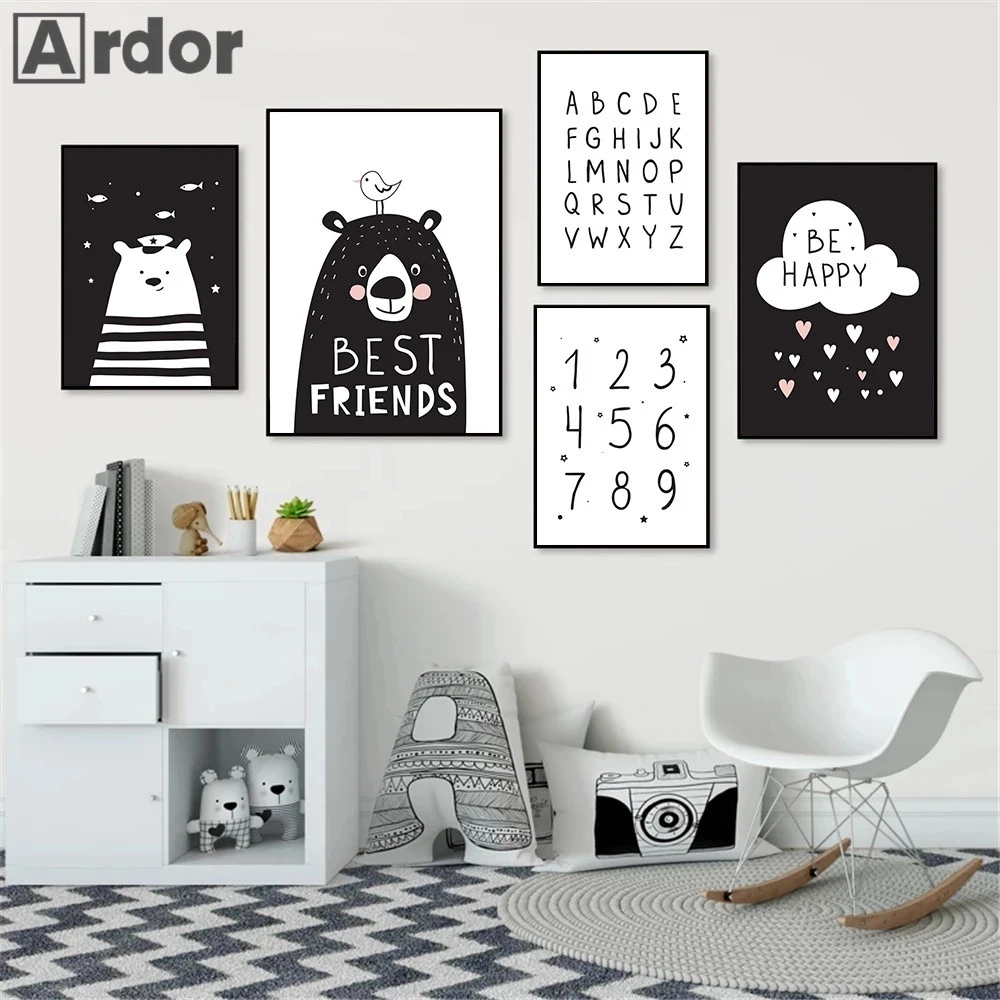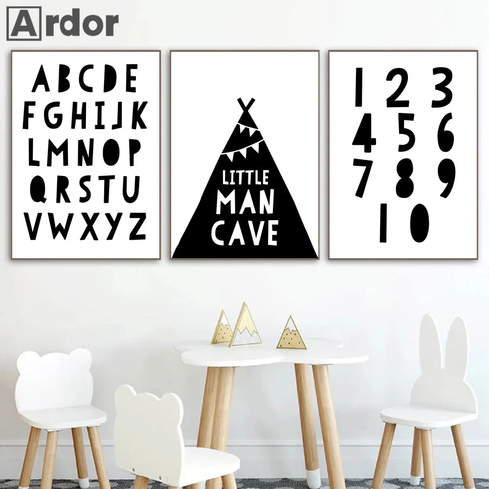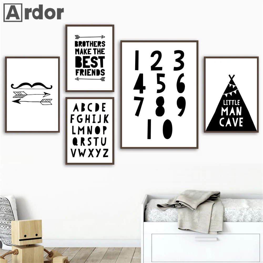 Черно-белая картина со стрелками и цифрами алфавита, Картина на холсте, рисунок братьев, маленьких мужчин, пещера, настенные картины, декор для комнаты мальчика