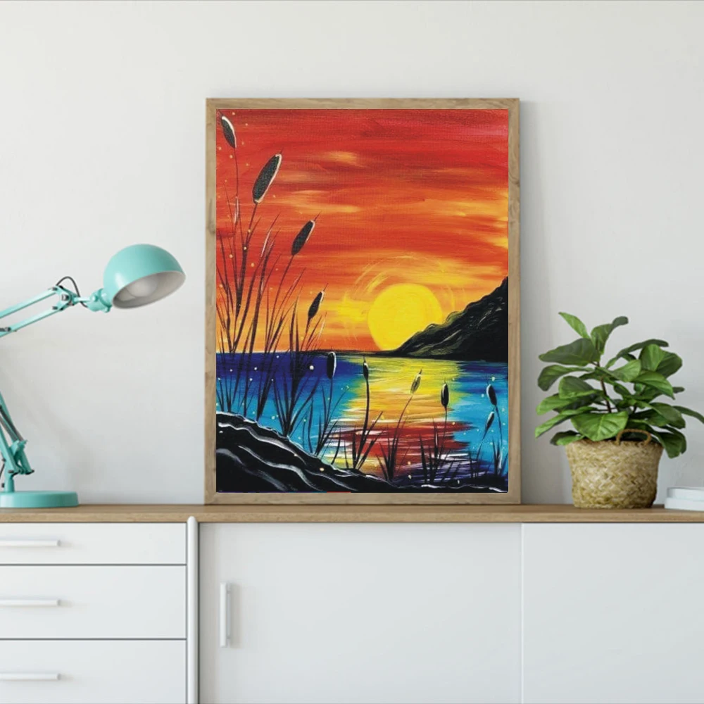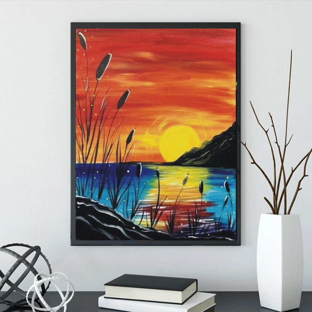 Картина Закат Ландшафтная мозаика с бриллиантами, вышивка крестиком...