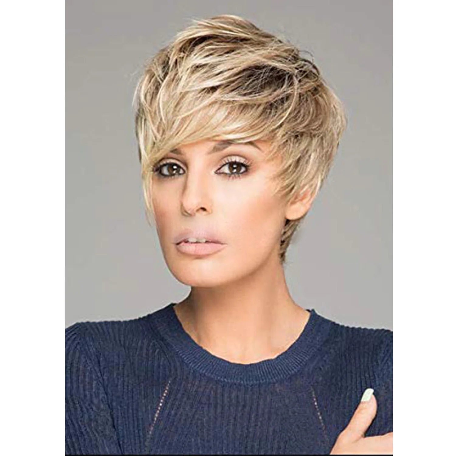 Женский синтетический короткий парик с челкой, смешанные коричневые...