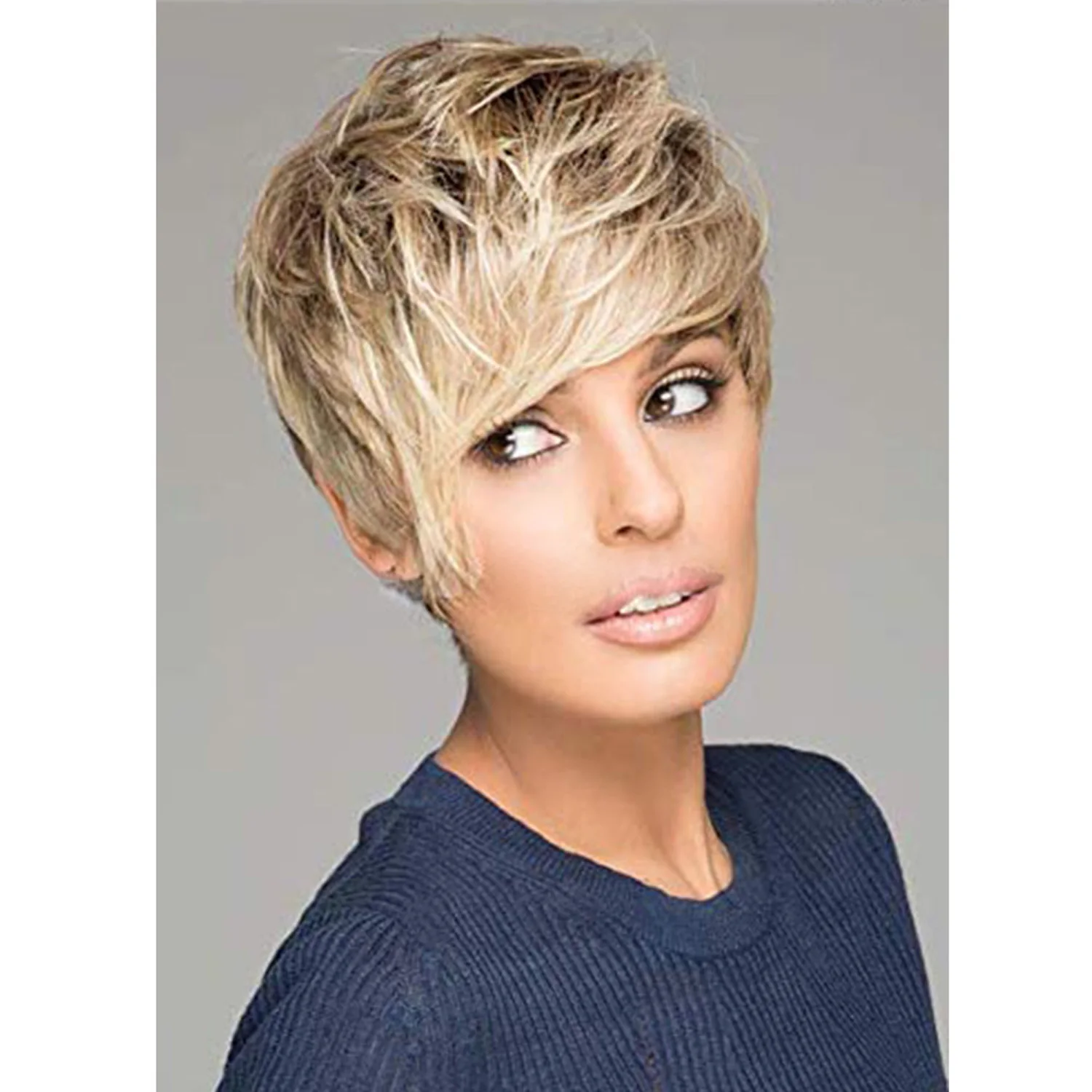 Парик для женщин, короткие прямые синтетические волосы светильник-золотые парики, высокотемпературные волоконные парики для ежедневного использования