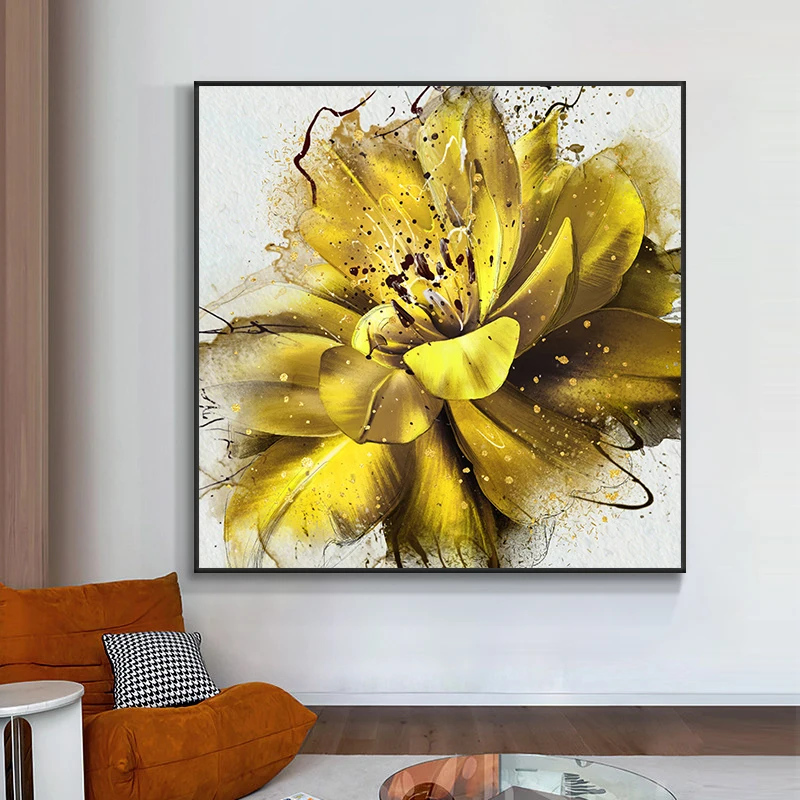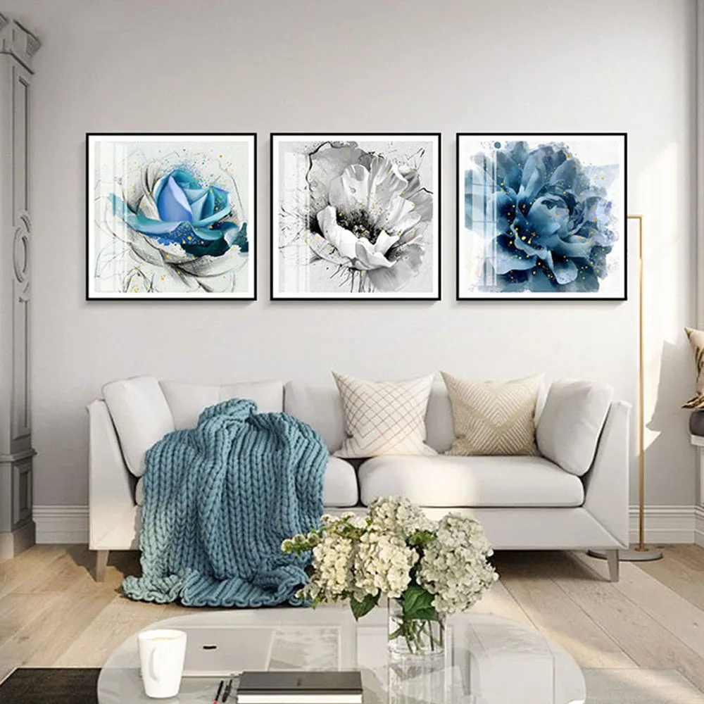 Картина маслом на холсте, фотообои с изображением синего золота цветов для гостиной, кофе