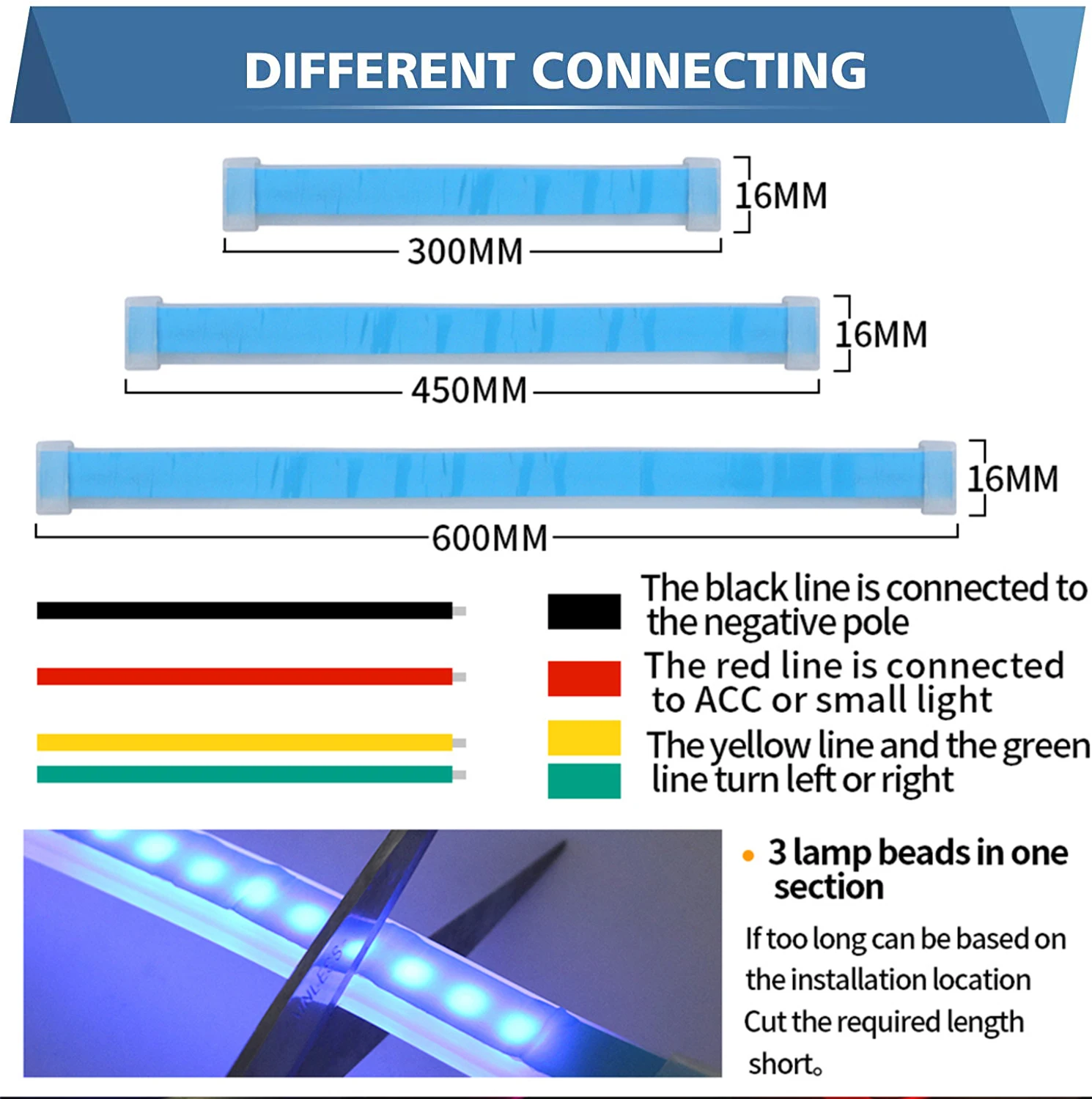 Применение: дневные ходовые огни, сигнальные лампы поворота, украшения автомобильных головных фонарей и т. д.