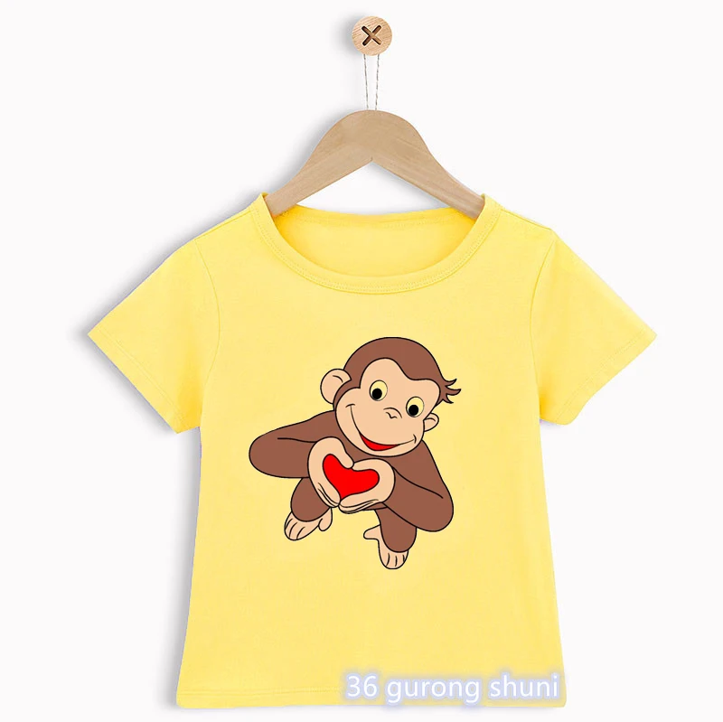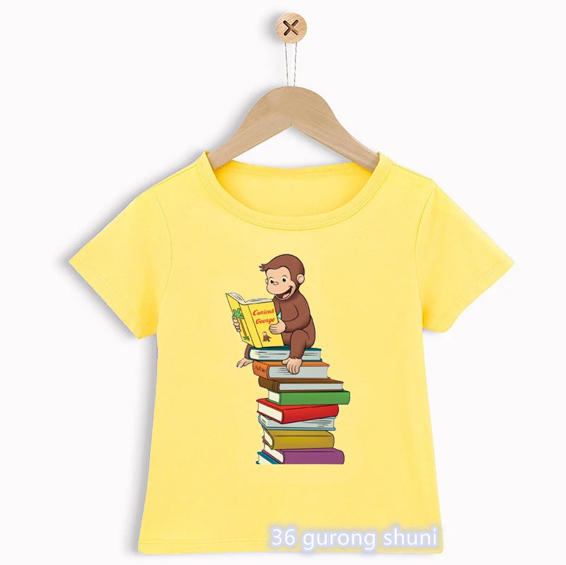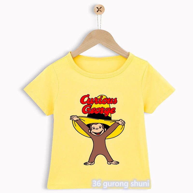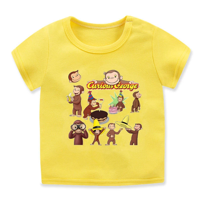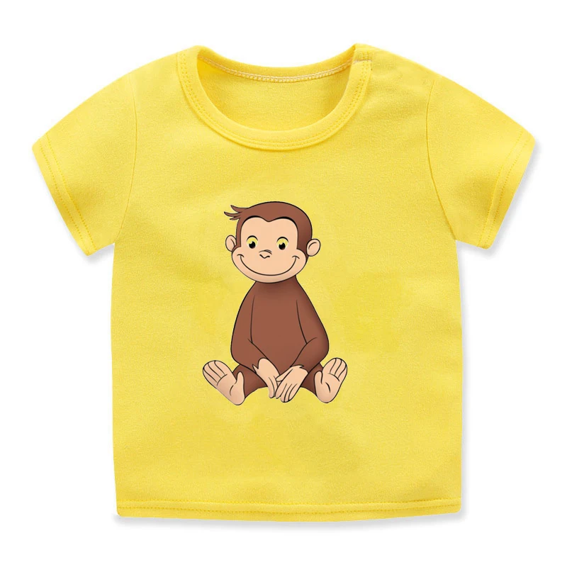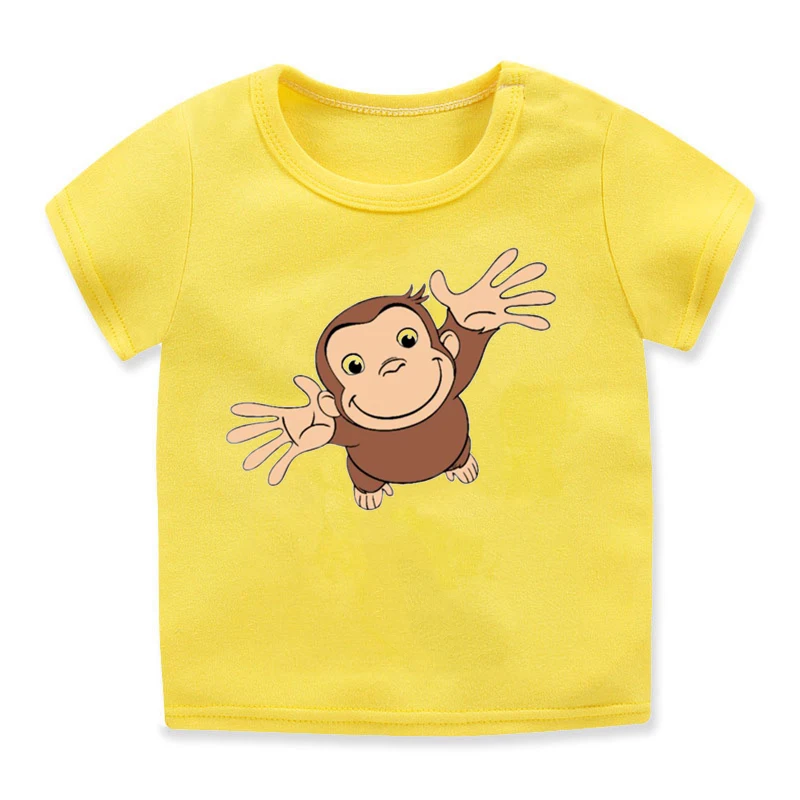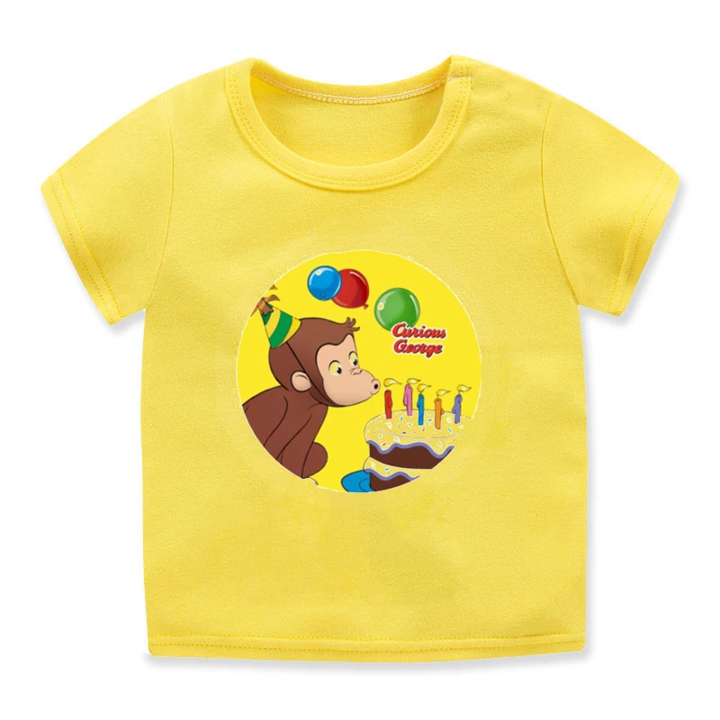 Футболка для мальчиков с изображением любопытного Джорджа и обезьяны из мультфильма, Детская рубашка, летняя модная детская футболка, высококачественные футболки для девочек, топы