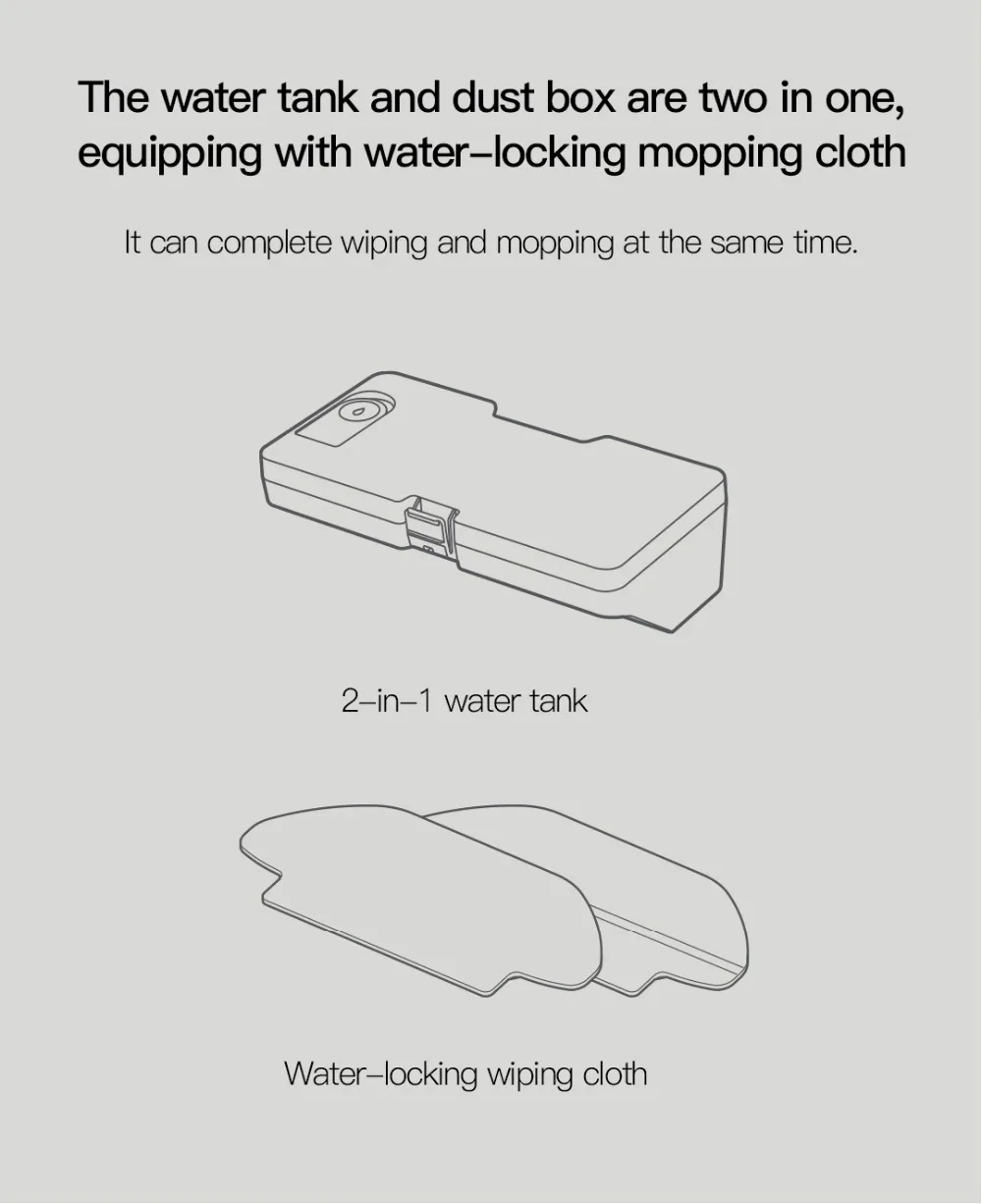 Резервуар для воды и пылесборник два в одном оборудовании с водоблокирующей тканью для мытья половМожно одновременно протирать и мыть.