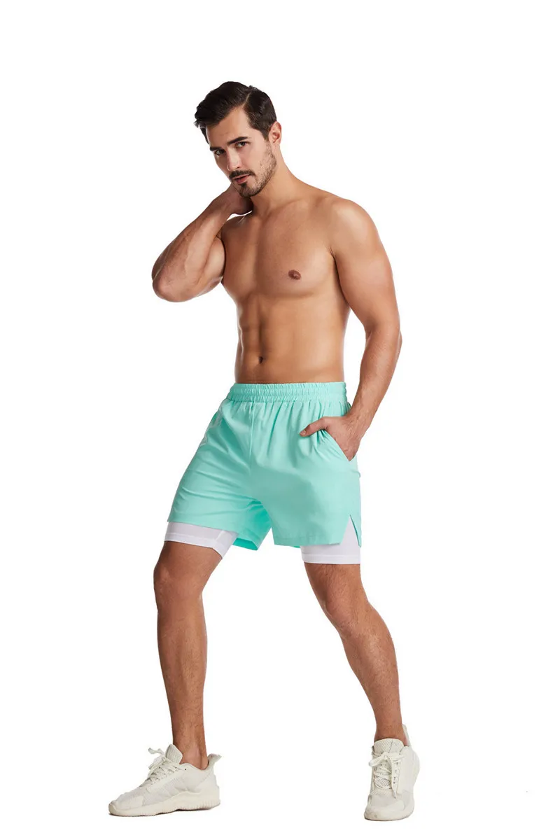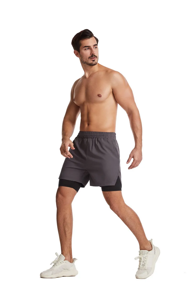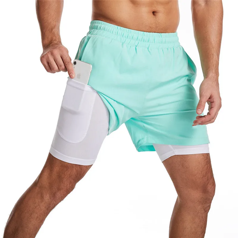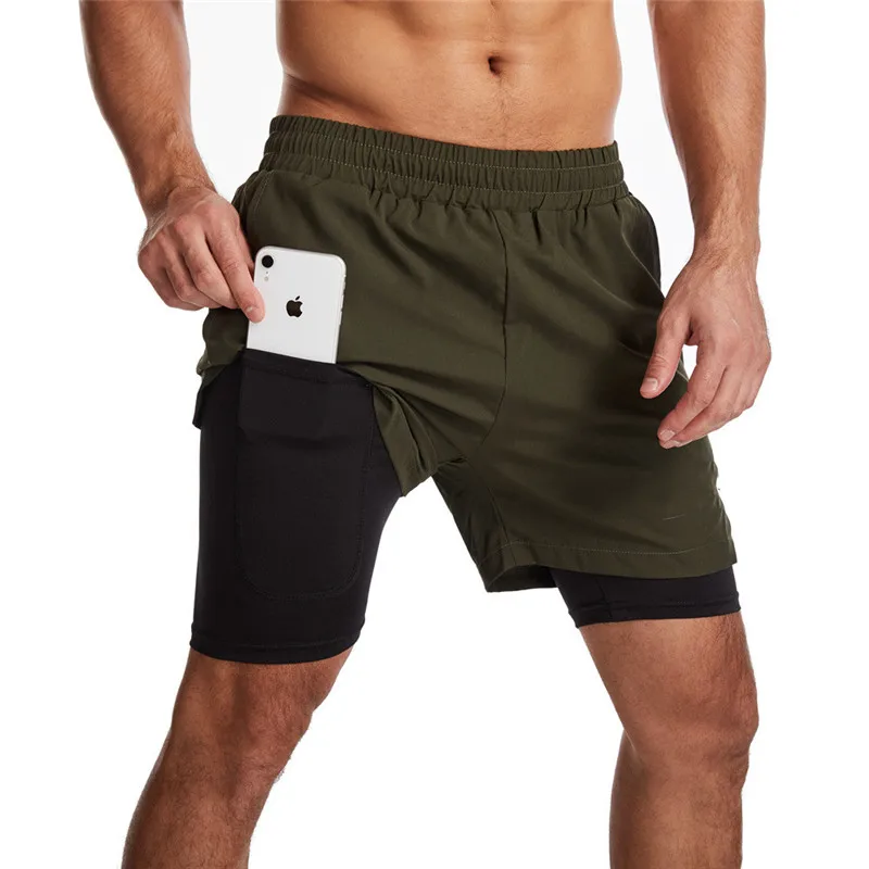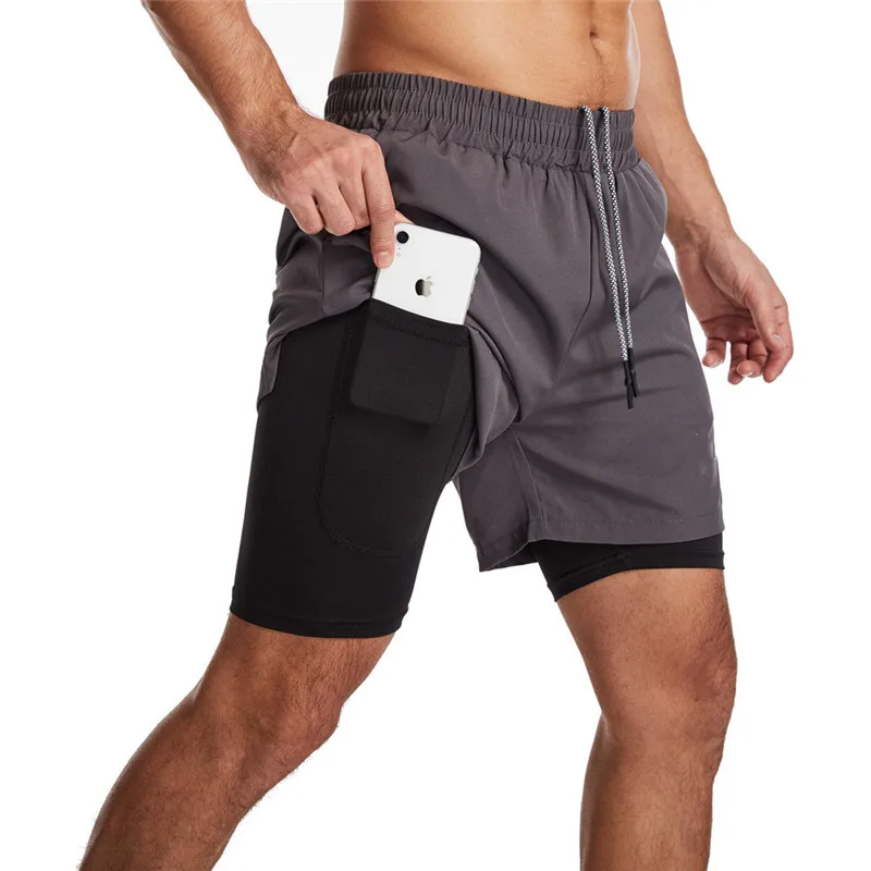 Мужские шорты для бега на открытом воздухе, спортивные шорты 2 в 1 для бега и фитнеса, быстросохнущие мужские спортивные шорты для тренировок в тренажерном зале, Новинка лета 2021