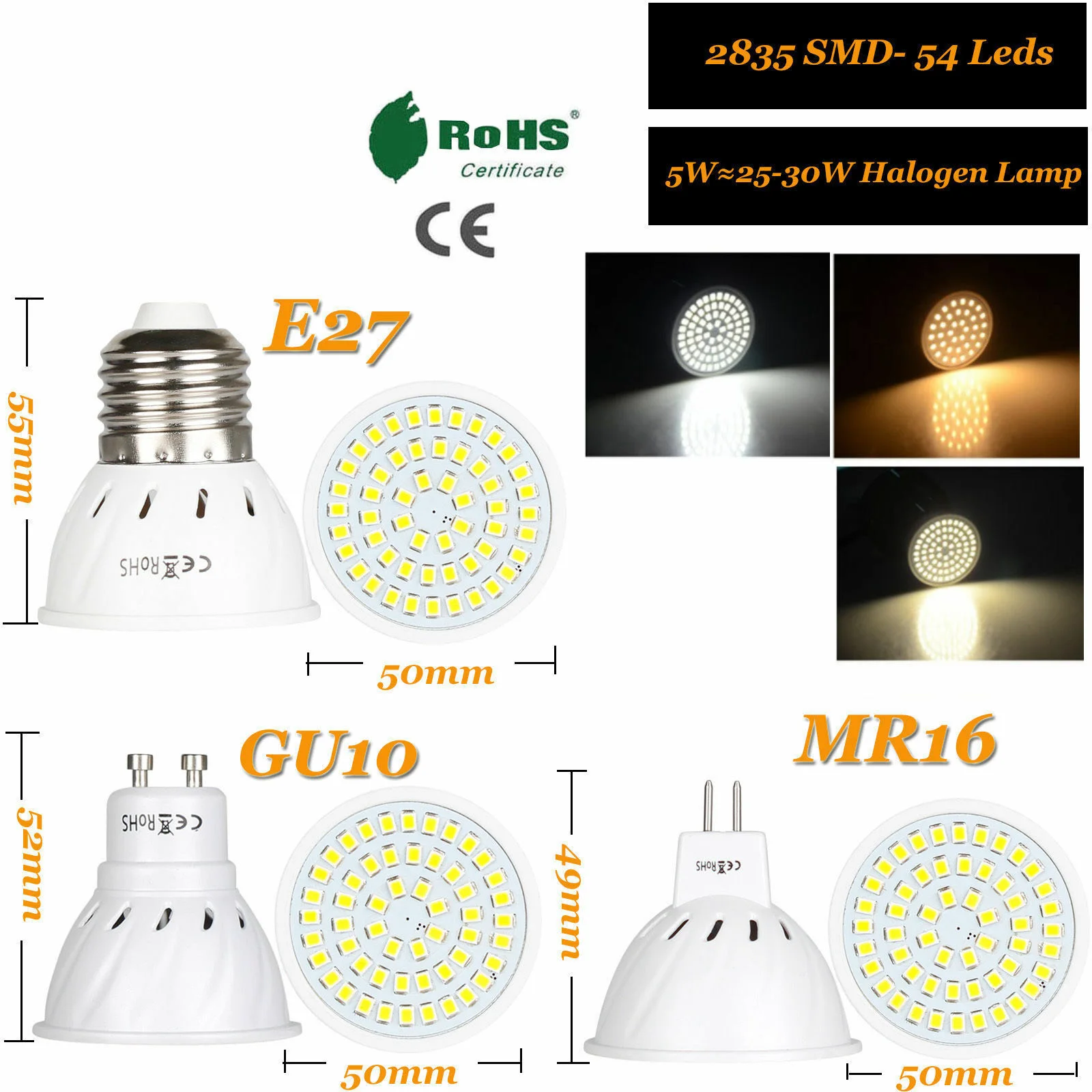 GU10 MR16 E27 Светодиодный точечный светильник лампа 3W 4W 5W 2835 SMD 36/54/72 светодиодный s лампа 110V 220V 12V lampara светильник