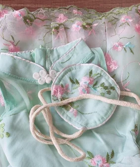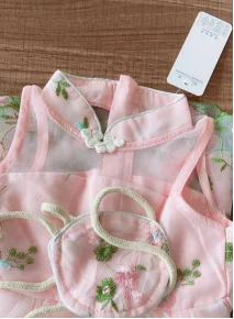 Платья для девочек, Китайская вышивка с цветами, Сетчатое платье ханьфу без рукавов с сумкой, Детские платья для девочек