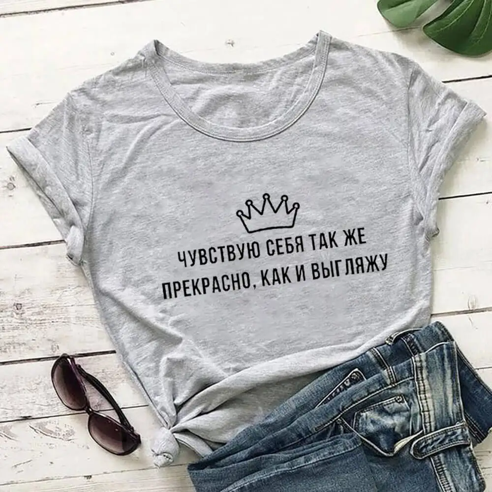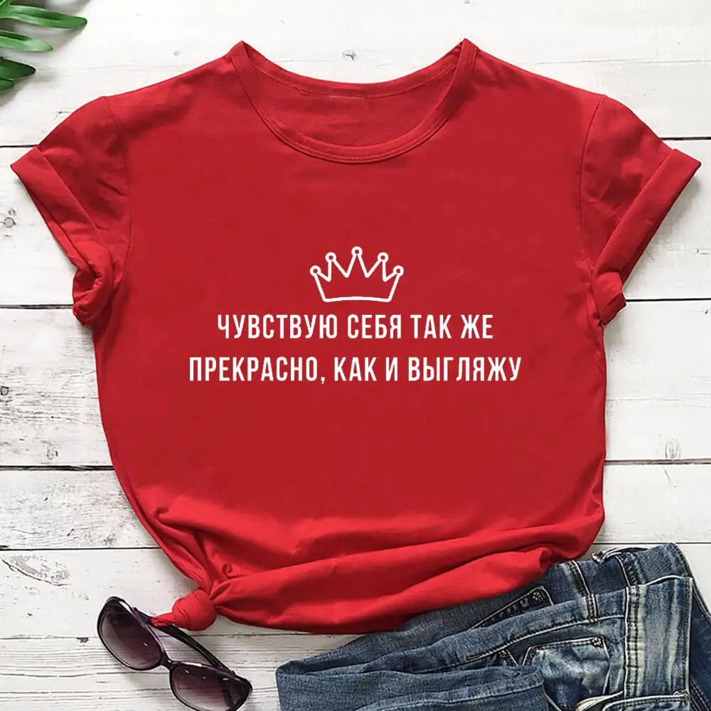 чувствую себя прекрасно русская буква печать новое поступление женская прикольная летняя хлопковая футболка с коротким рукавом майка женская футболка