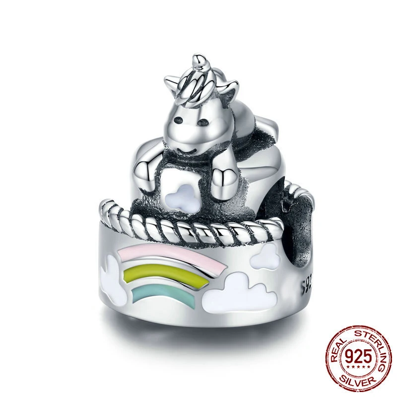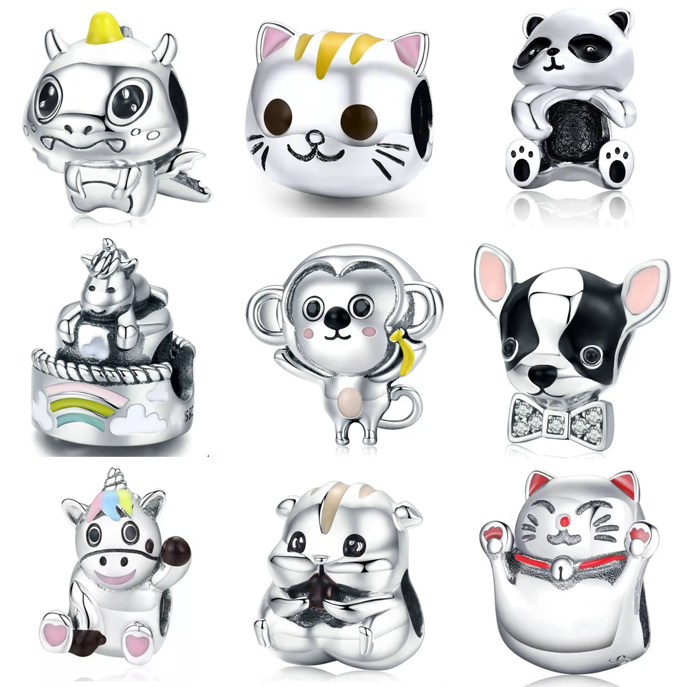 Новый 925 пробы, серебряный милый динозавр, единорог, обезьяна, щенок, хомяк, бусины, подходят для оригинальных шармов, браслет Pandora, бисерные украшения