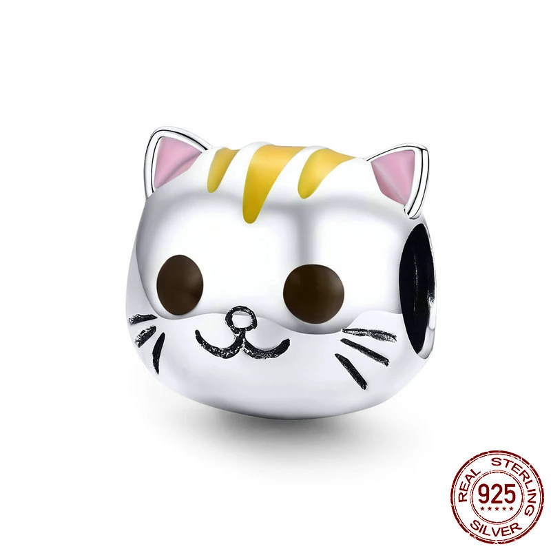 Новый бусины из стерлингового серебра 925 милый кот, очаровательный...