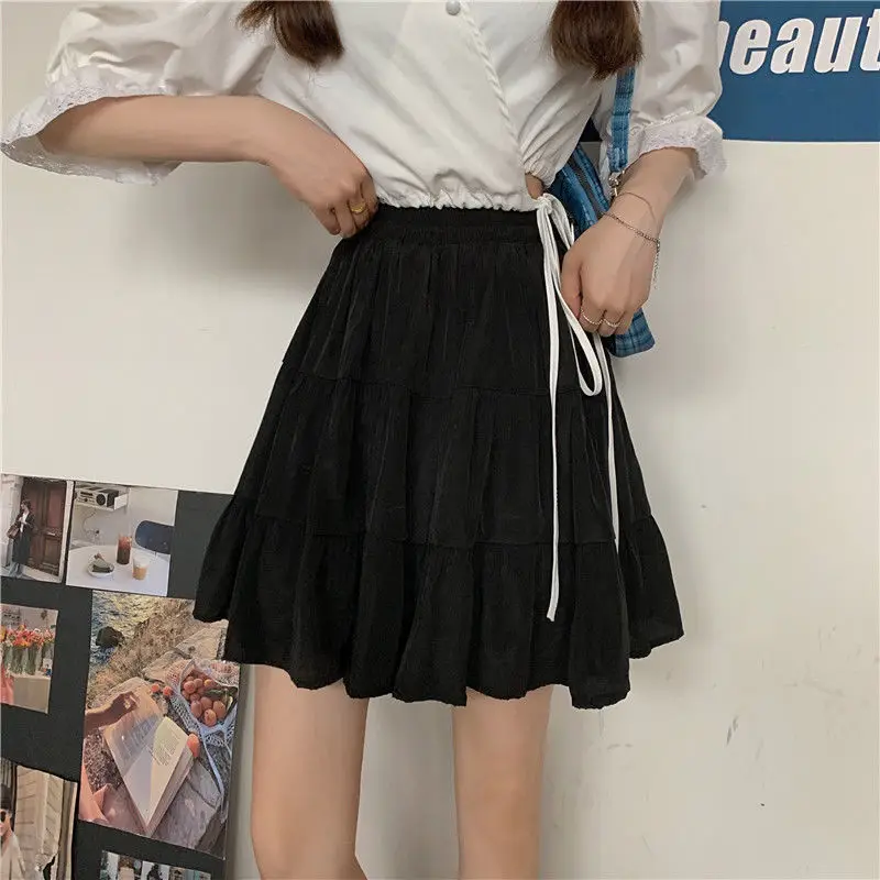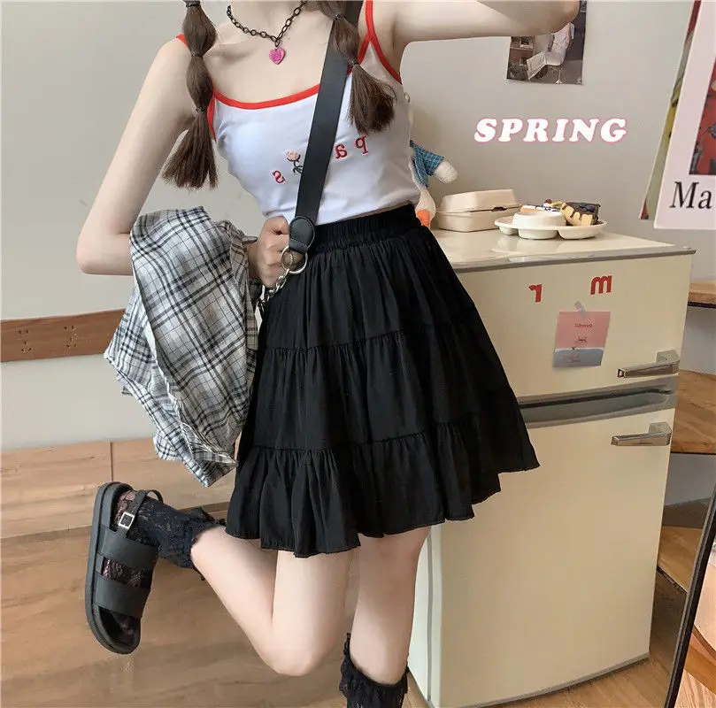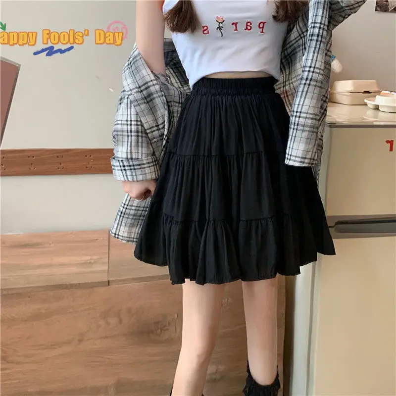 Для девочек-подростков, с высокой талией, Y2K трапециевидной формы плиссированная короткая юбка длиной выше колена 80s 90s, M, L для женщин Повседневная юбка с оборками; Цвет белый, черный; Сезон весна-лето