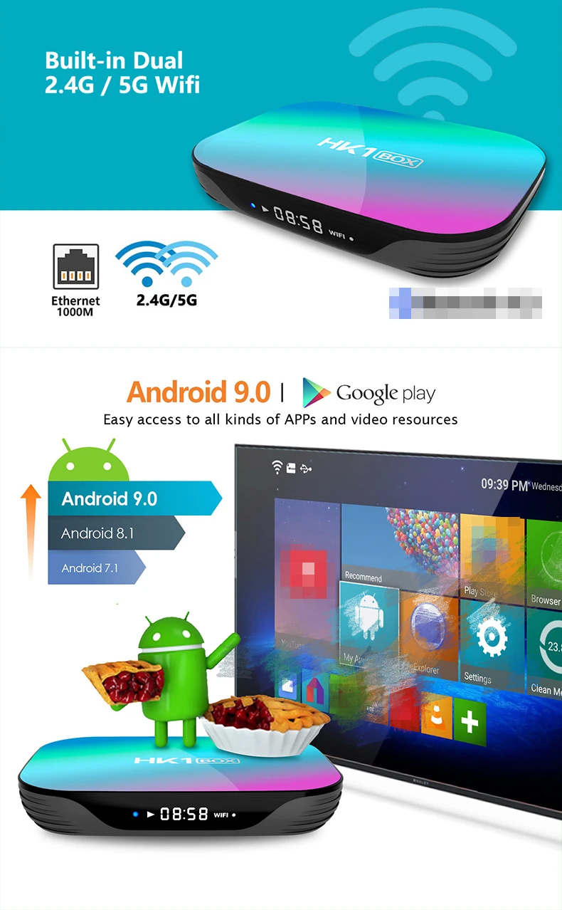ТВ-приставка HK1 BOX, Android 9,0, HK1BOX, 4K, 1080P, Amlogic S905X...