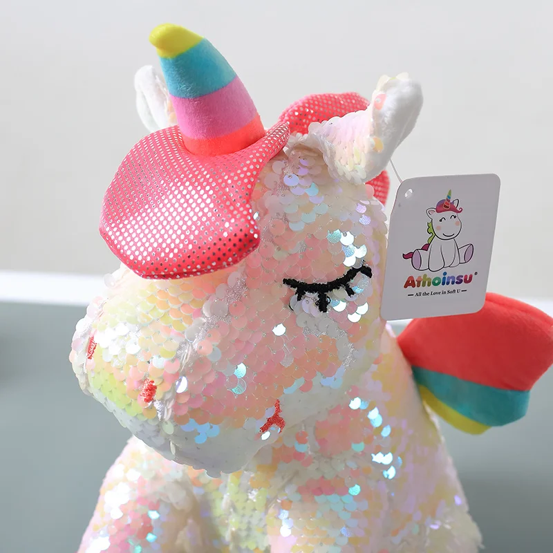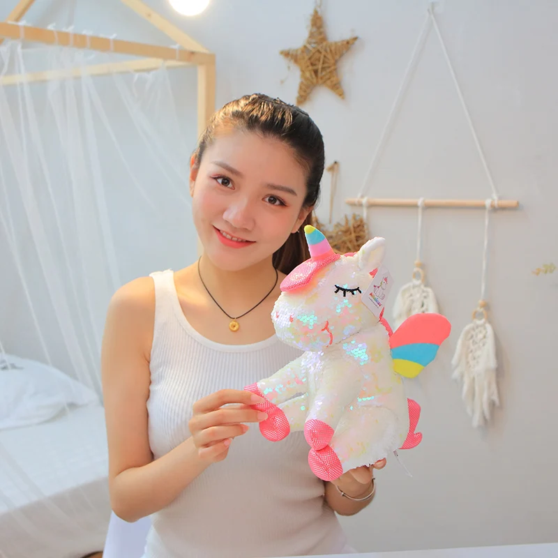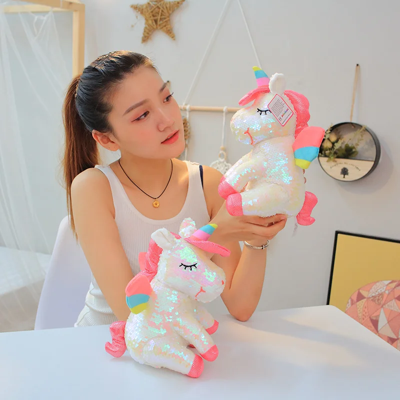 28 см волшебная сублимационная откидная пайетка лошадь набивные животные Единорог Блестки для девочек мягкая плюшевая кукла игрушка