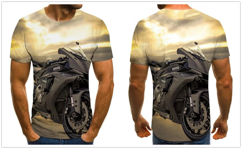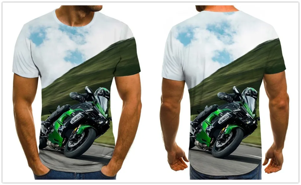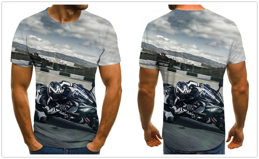 Крутые гонки футболка с графикой мотоцикл 3D печатных мужская летня...