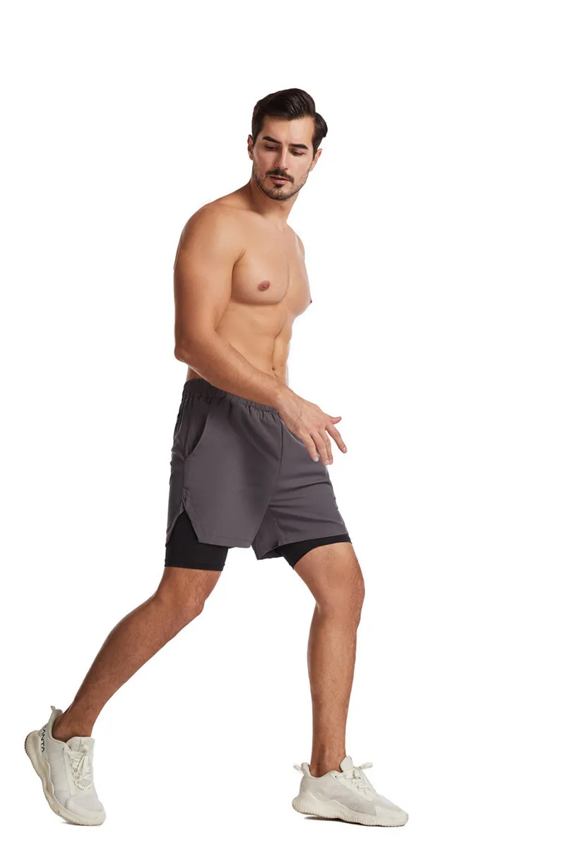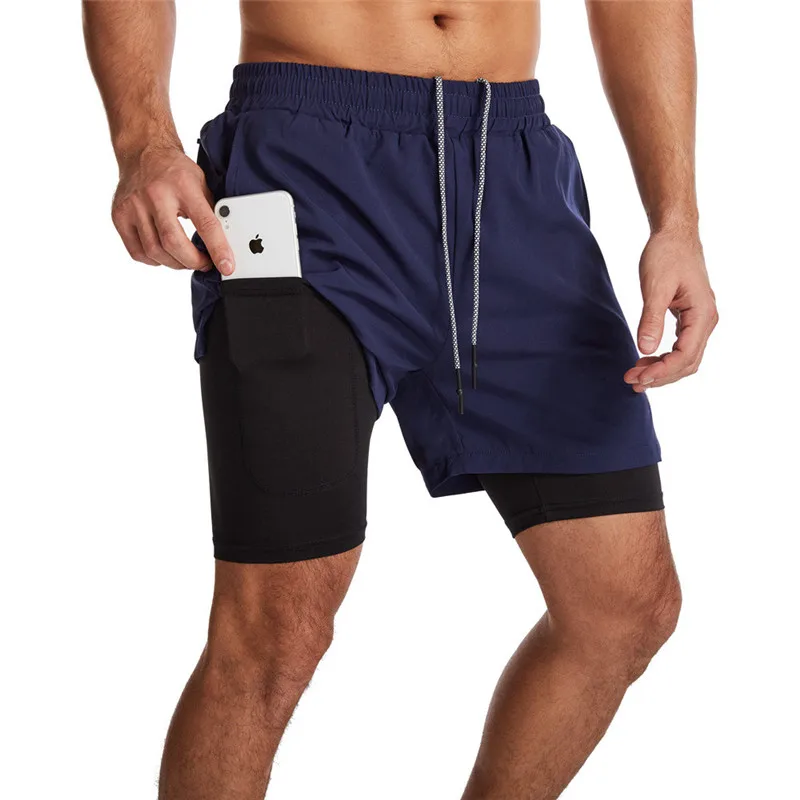 Новинка 2021, мужские беговые шорты 2 в 1, быстросохнущие бриджи для тренировок, мужские спортивные шорты для спортзала