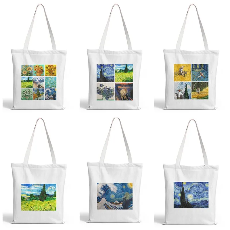 Женская Холщовая Сумка-тоут Van Gogh, смешная вместительная сумочка на плечо с графическим принтом, шоппер в стиле Харадзюку
