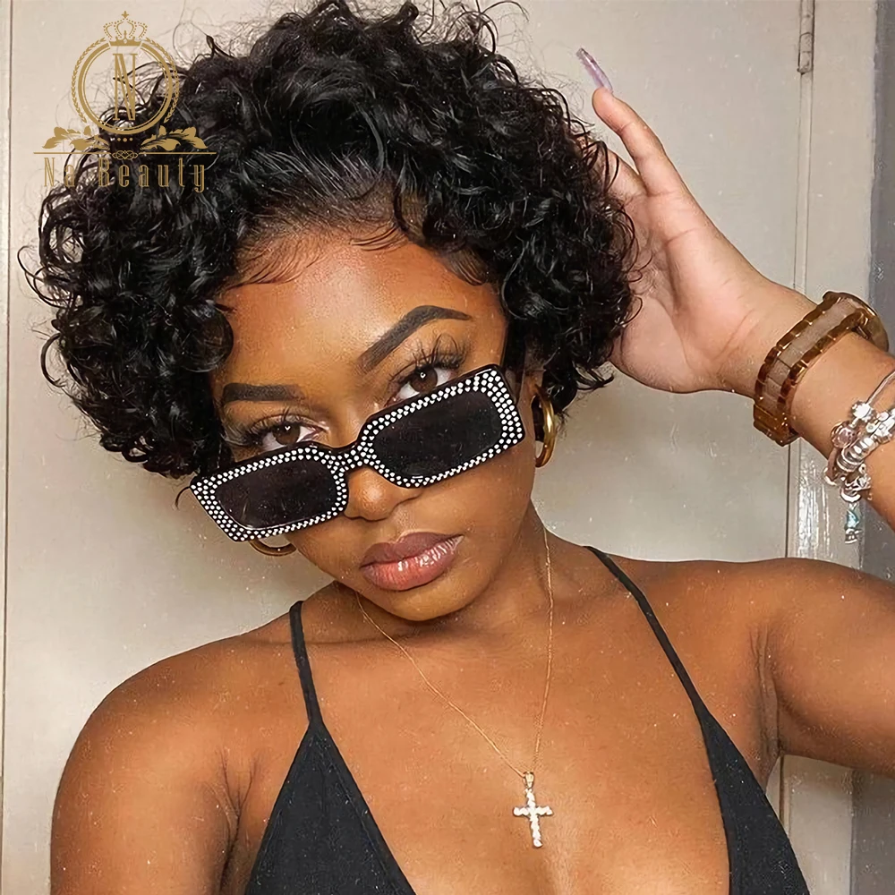 Парик из человеческих волос Pixie Cut, 360, парик с фронтальным кружевом для черных женщин, предварительно выщипанный короткий кудрявый Боб, 4x4, парик на застежке Nabeauty 150 Remy