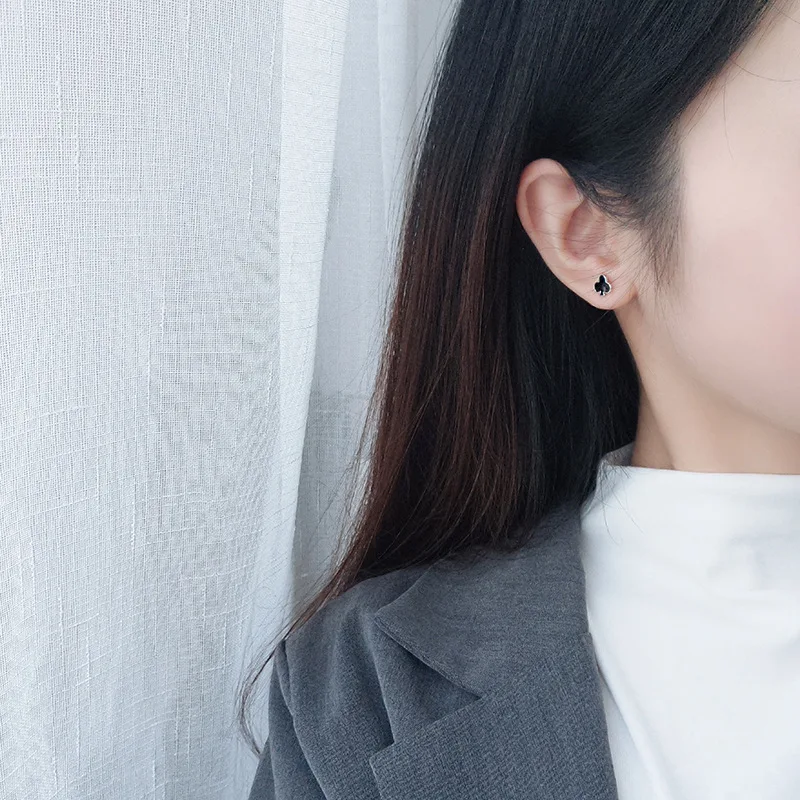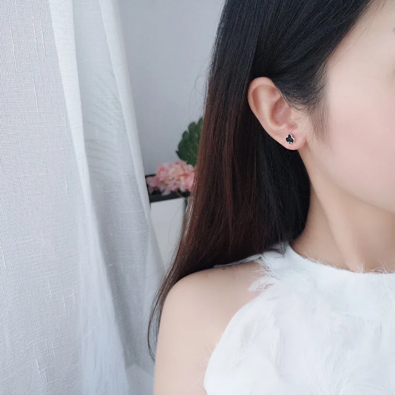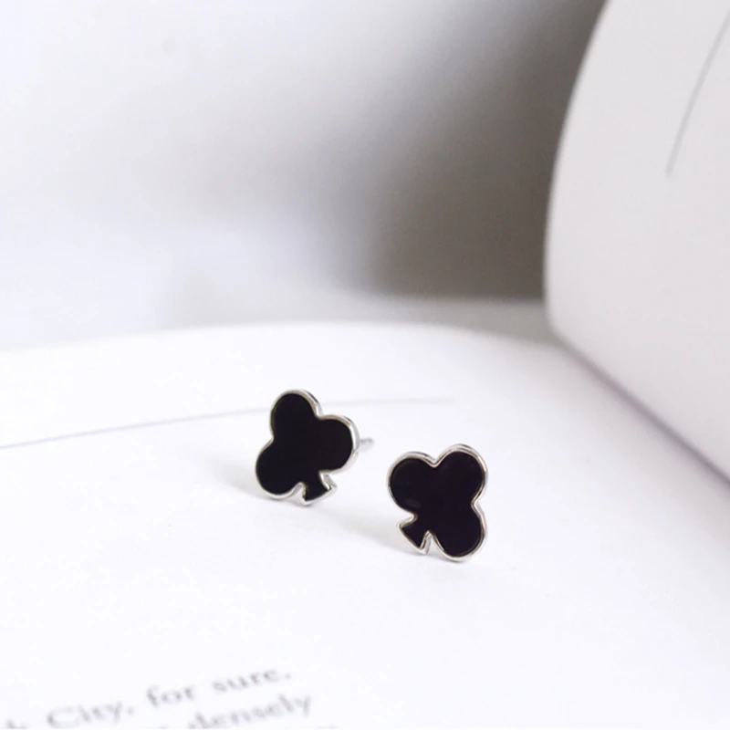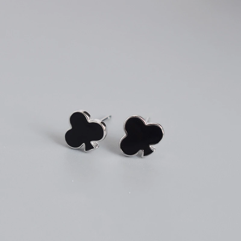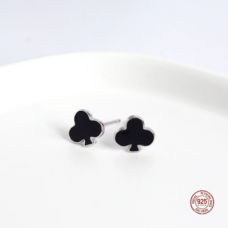 LKO Настоящее серебро 925 пробы, интересные модные серьги-гвоздики в виде покера с цветком для девочек, черные серьги из смолы для женщин, ювелирный подарок